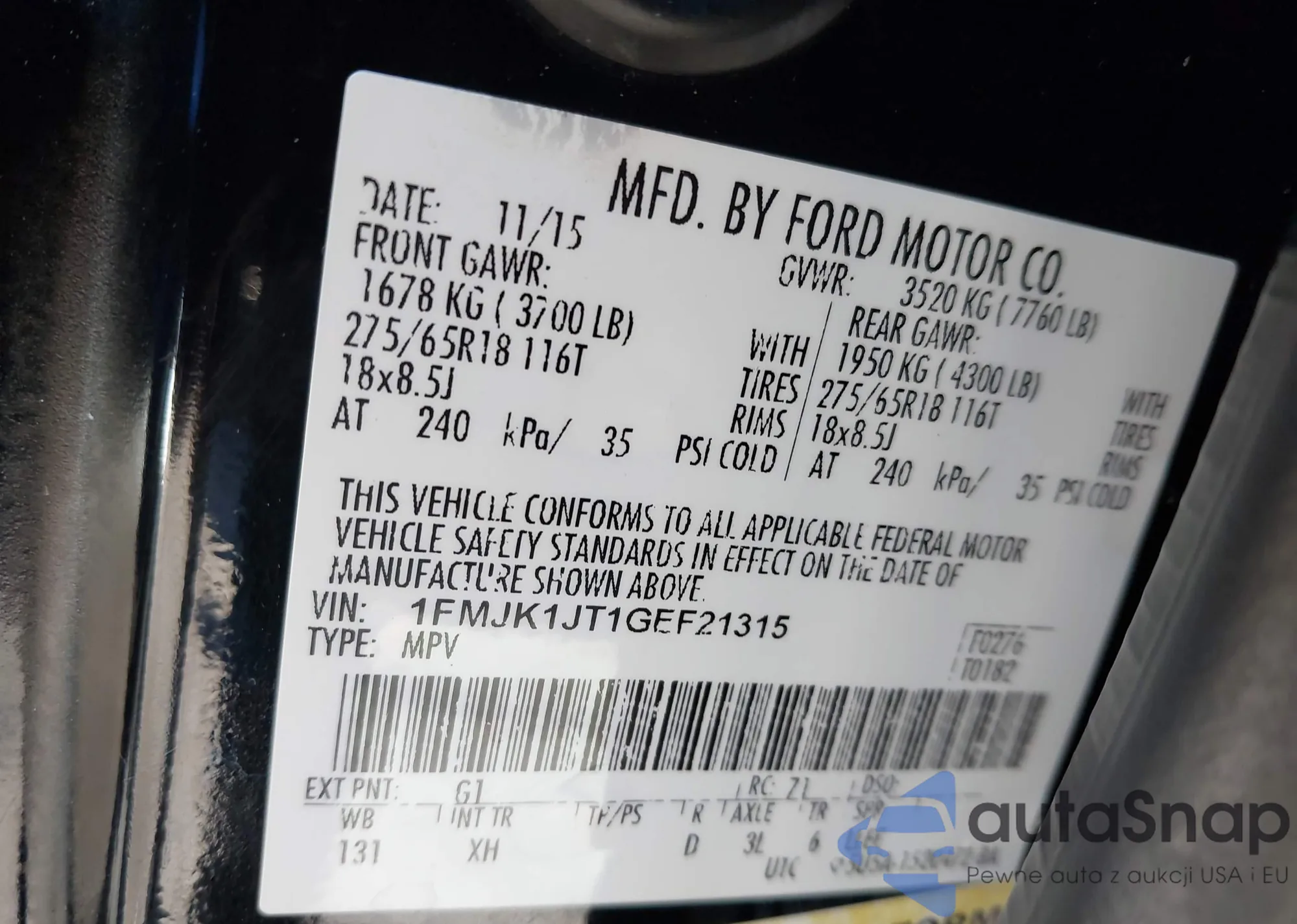 • VIN 1FMJK1JT1GEF21315