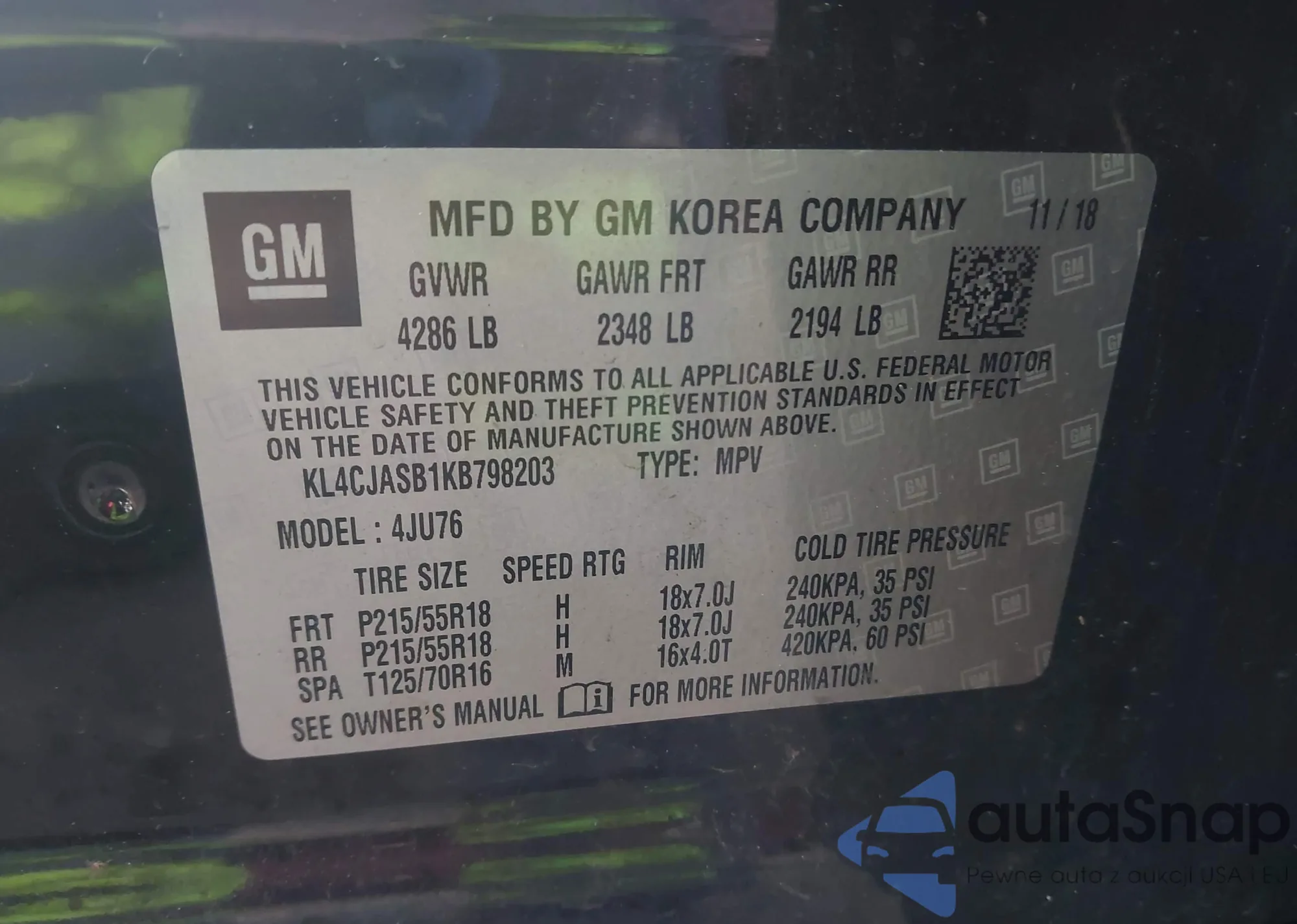 LOT: 43852340 VIN: 3TMDZ5BN7KM074139