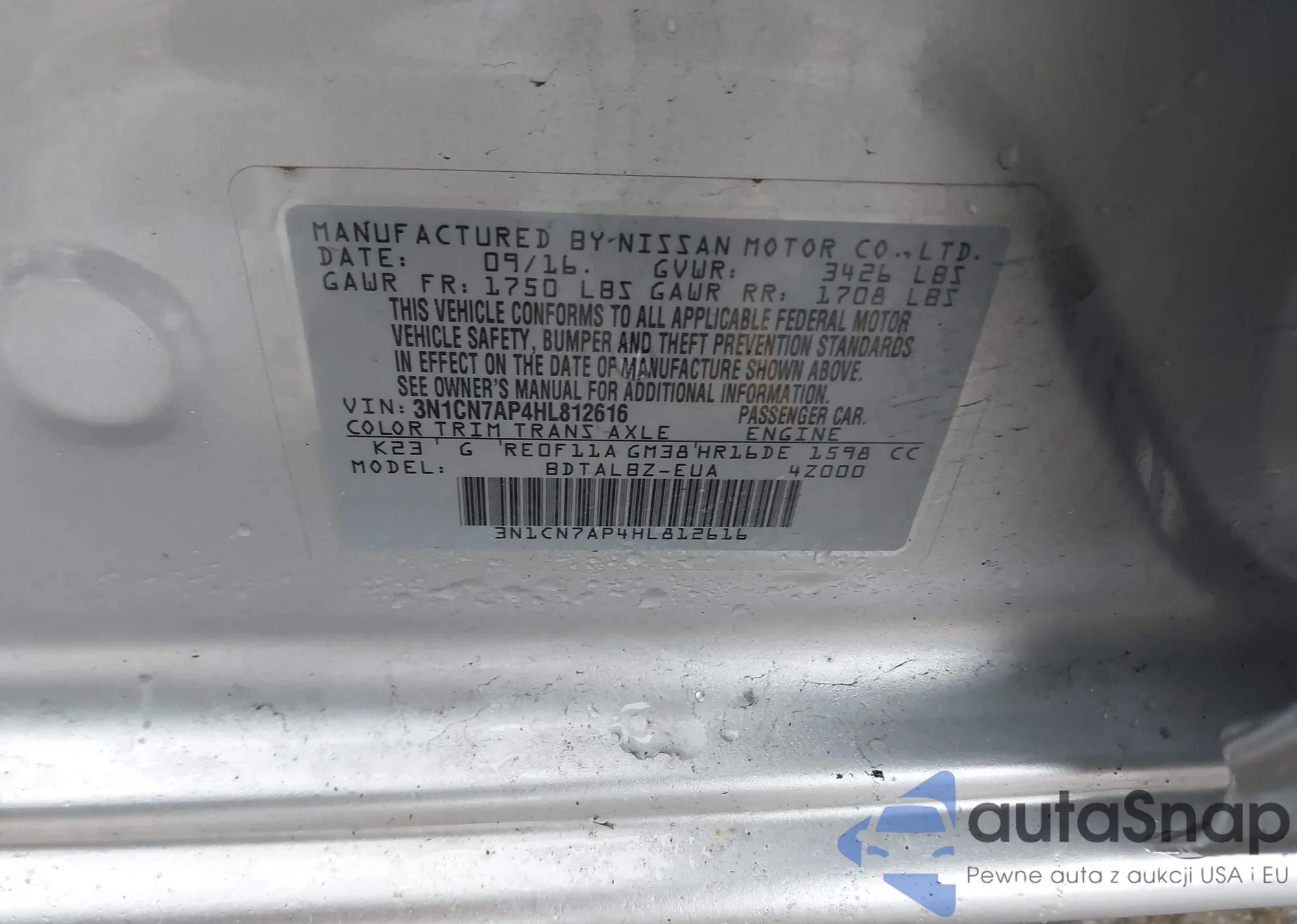 • VIN 3N1CN7AP4HL812616