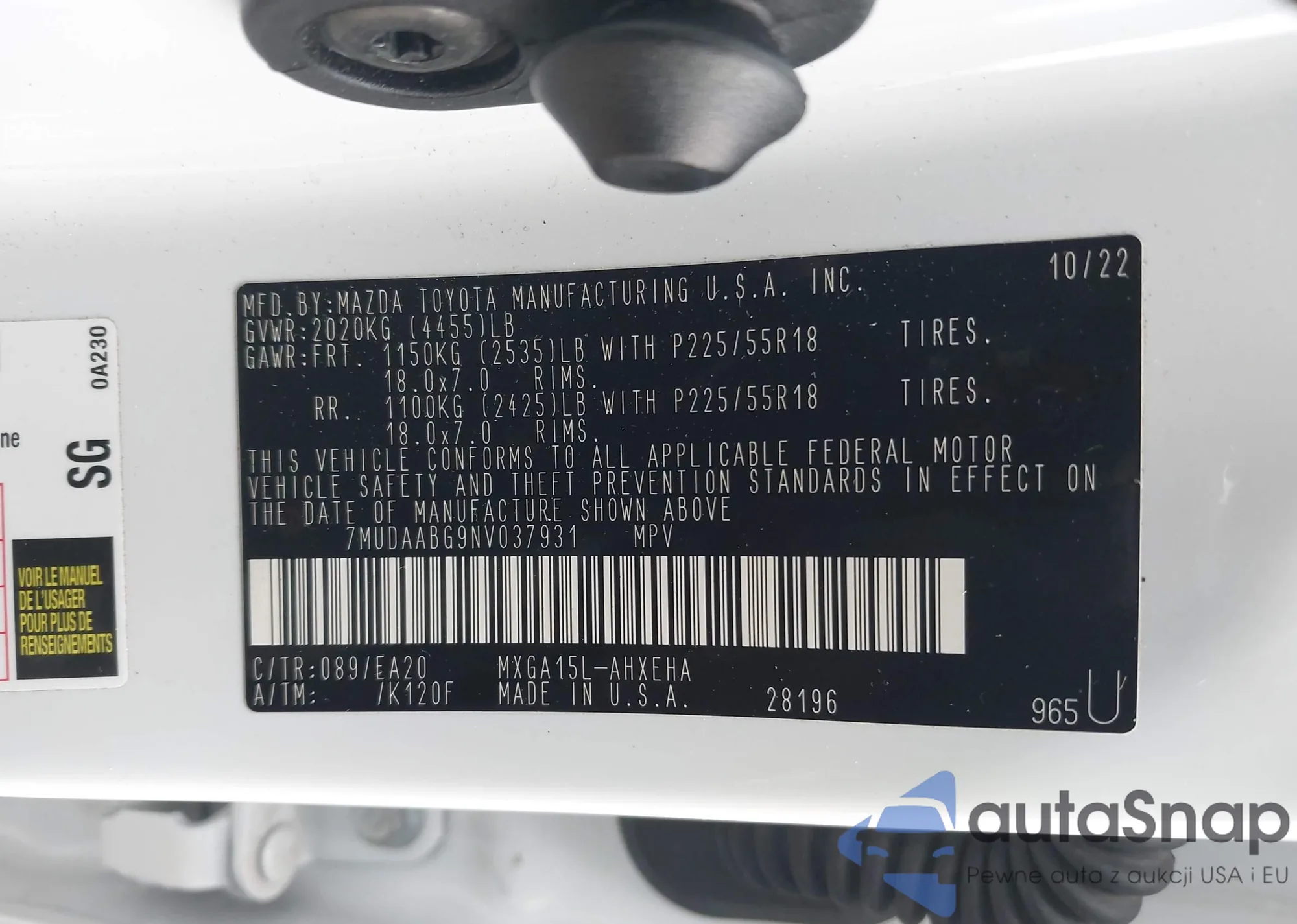 • VIN 7MUDAABG9NV037931
