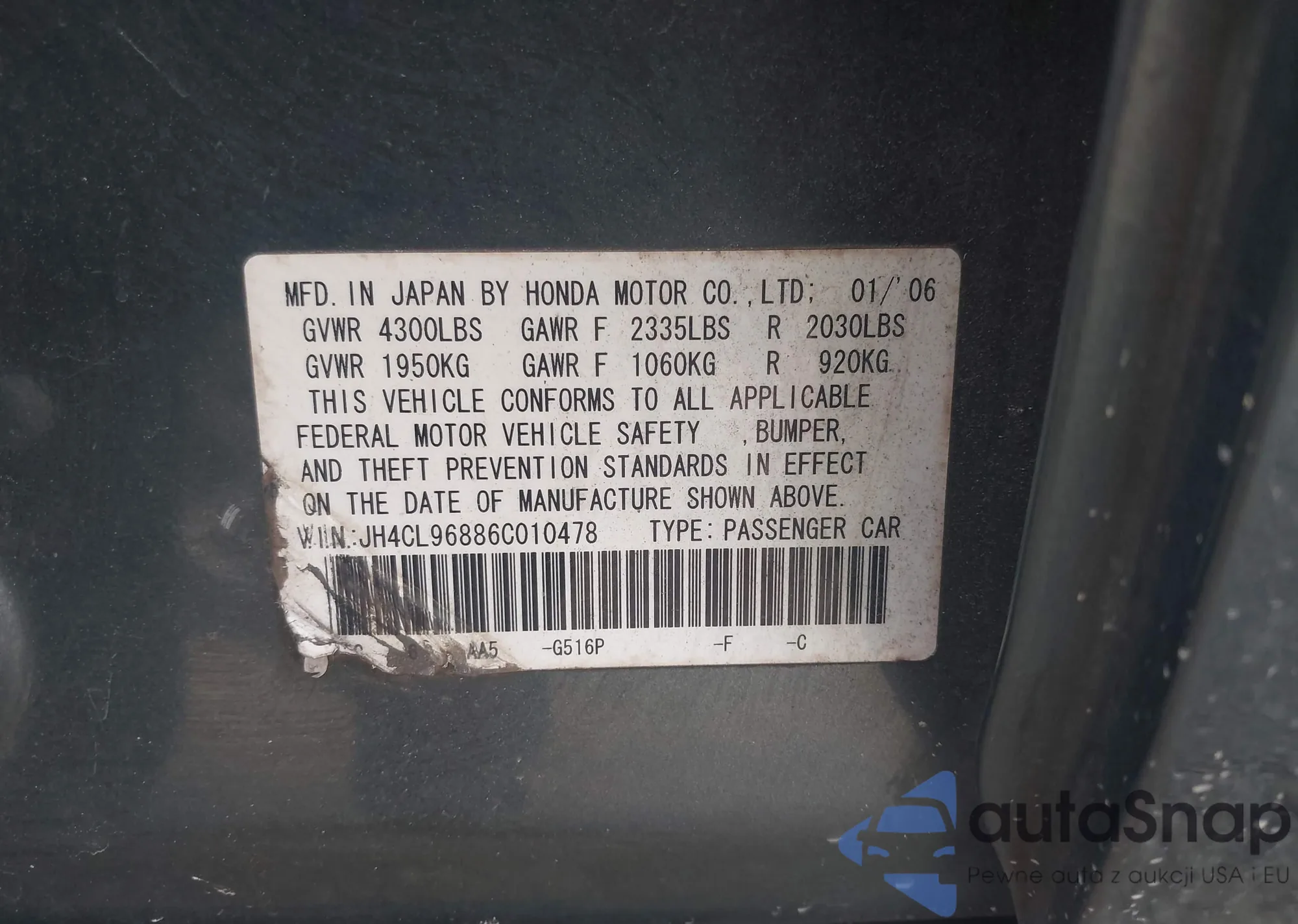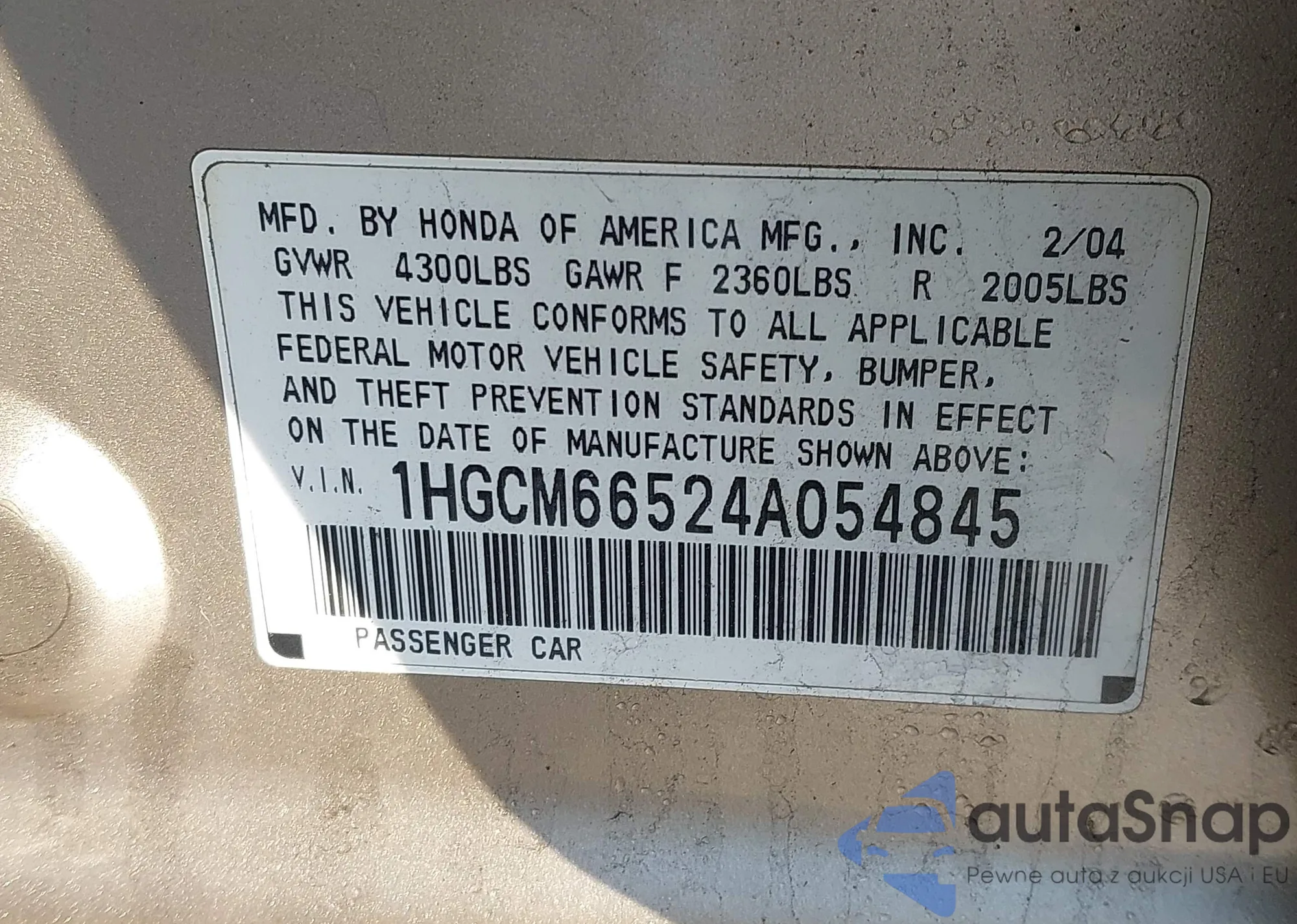 LOT: 44102149 VIN: 1HGCM66524A054845