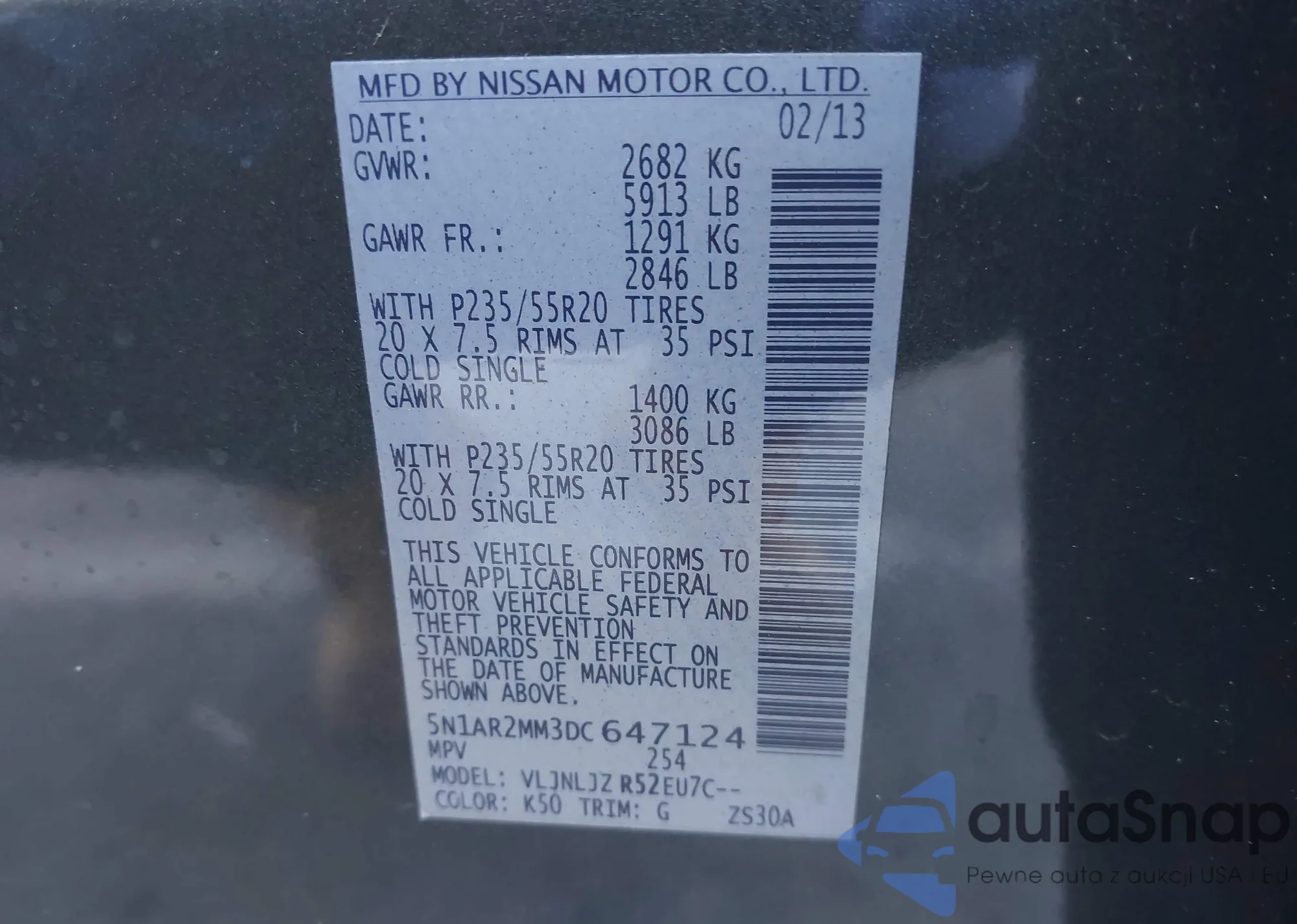 LOT: 44123868 VIN: 5N1AR2MM3DC647124
