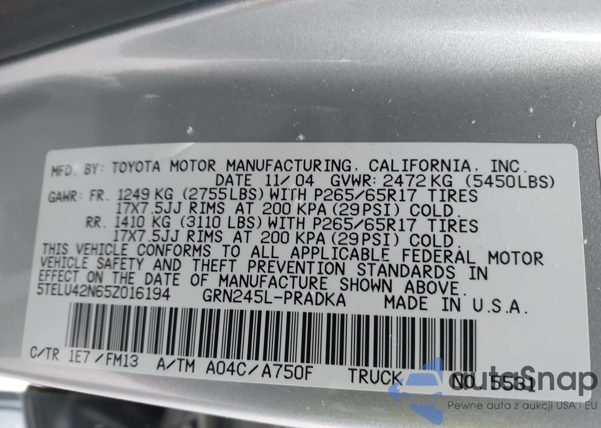 • VIN 5TELU42N65Z016194