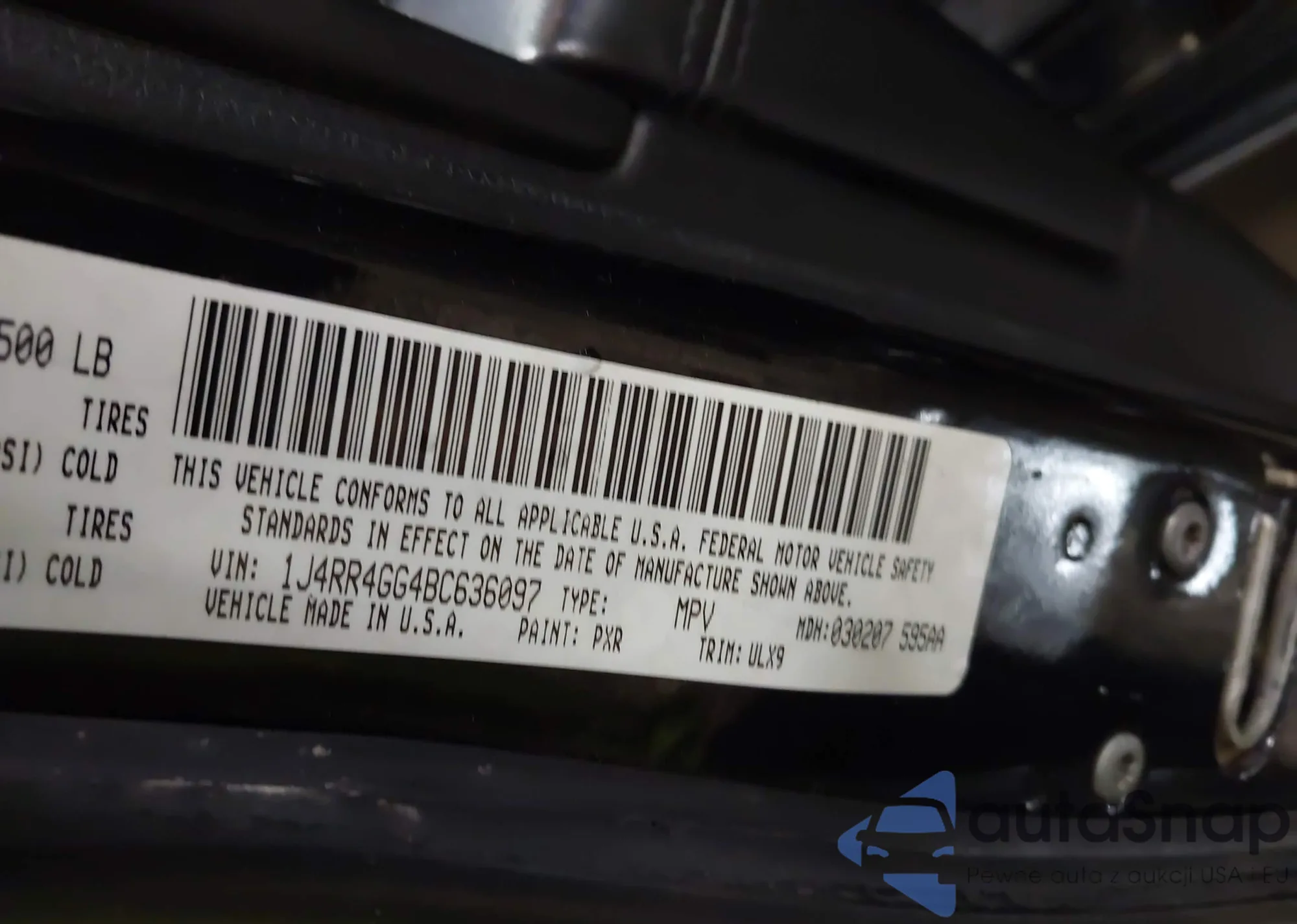 LOT: 42336903 VIN: 1J4RR4GG4BC636097