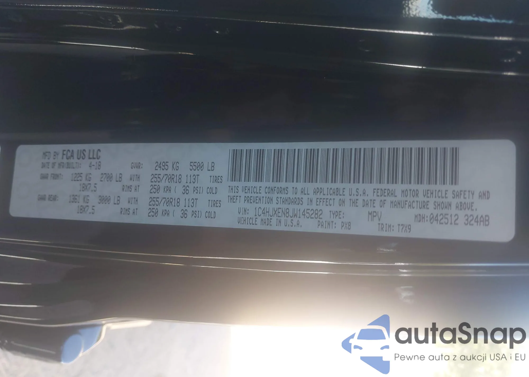 • VIN 1C4HJXEN8JW145282
