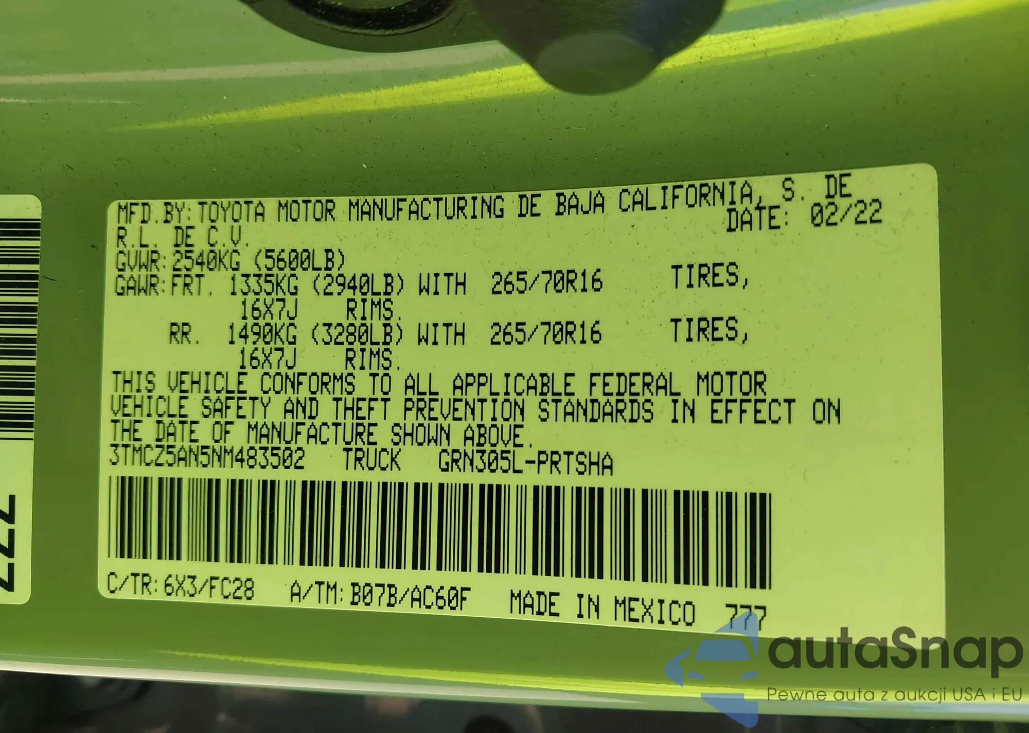 • VIN 3TMCZ5AN5NM483502