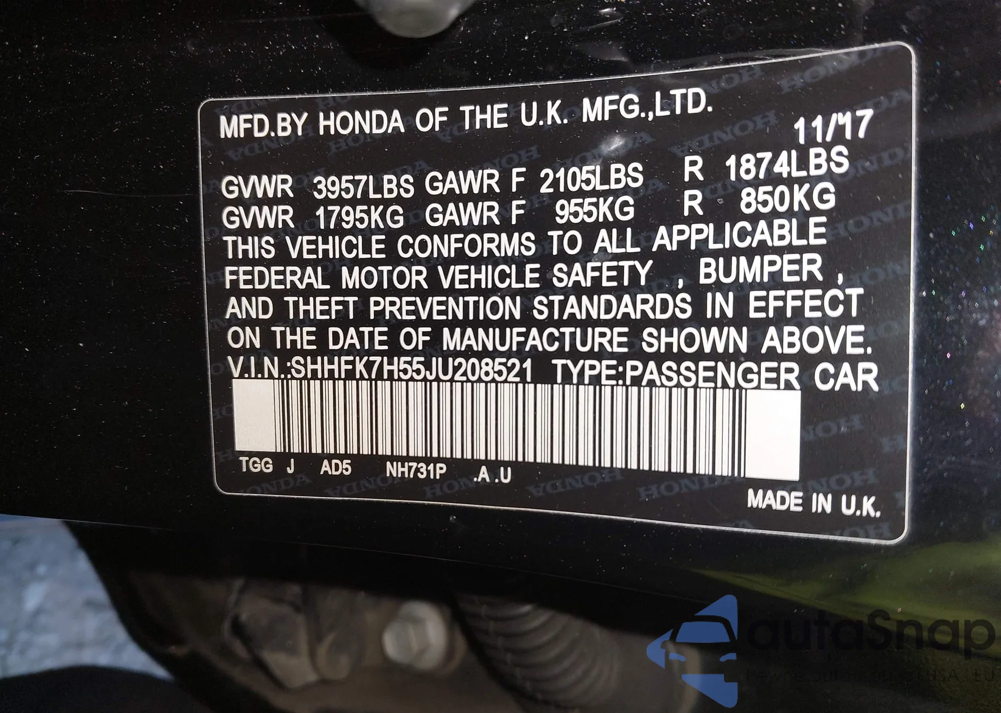 • VIN SHHFK7H55JU208521