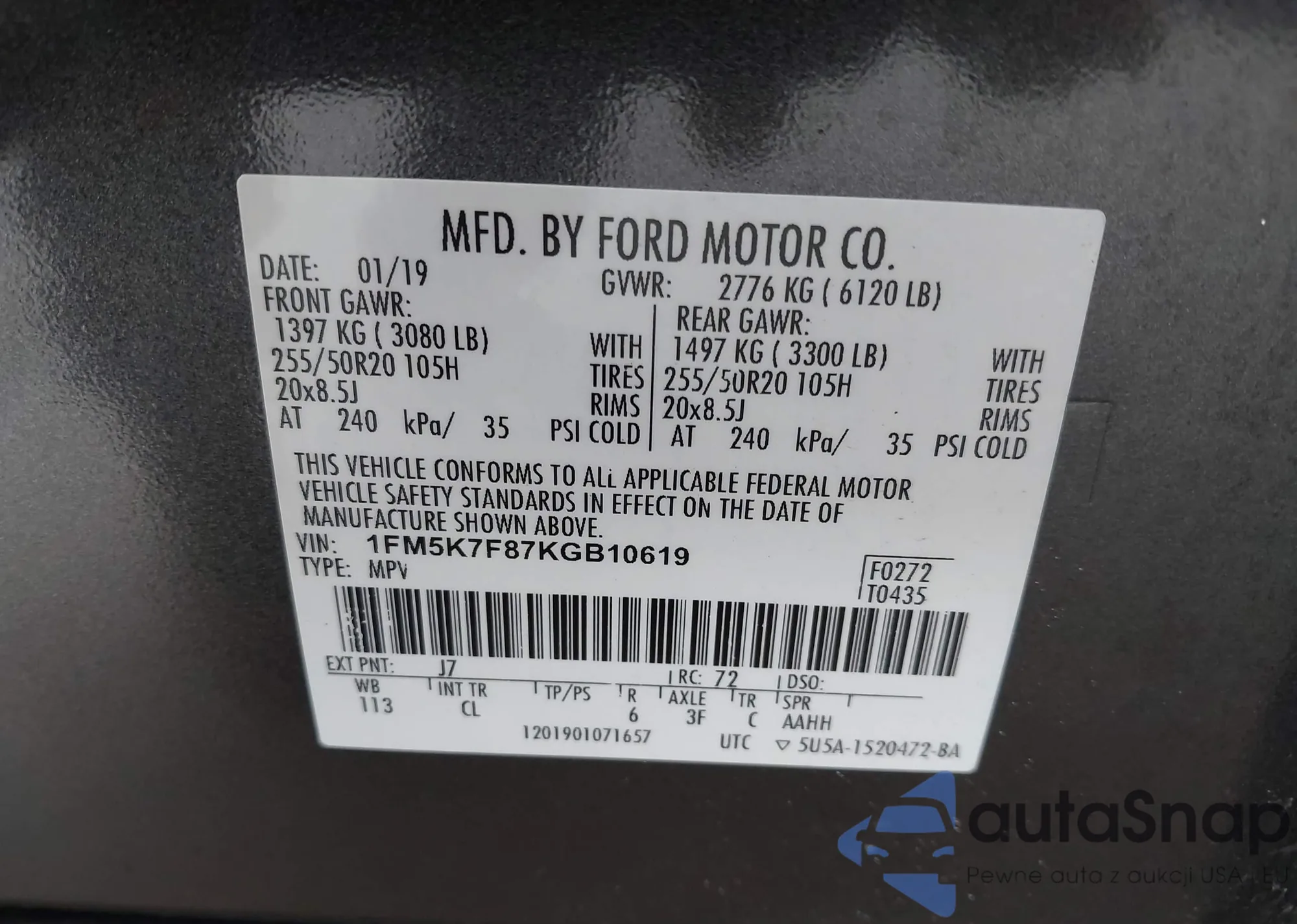 • VIN 1FM5K7F87KGB10619