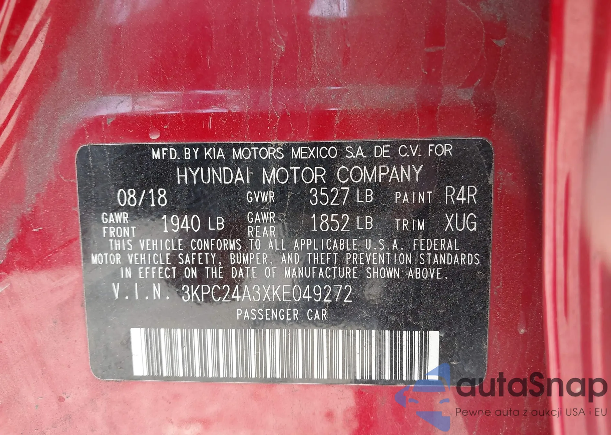 LOT: 39485518 VIN: 3KPC24A3XKE049272