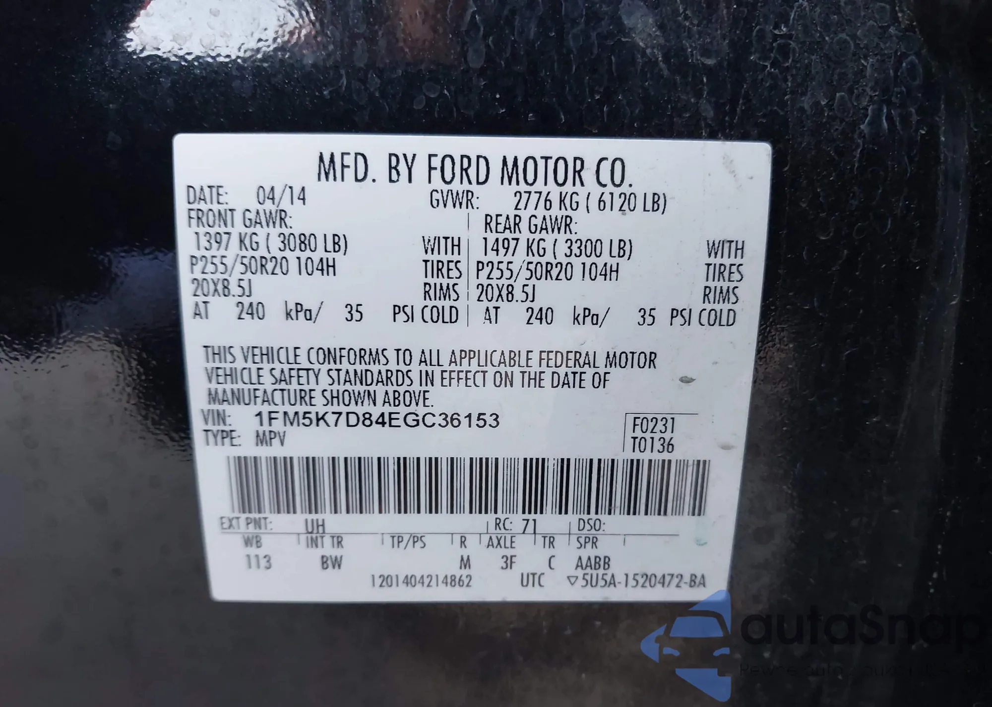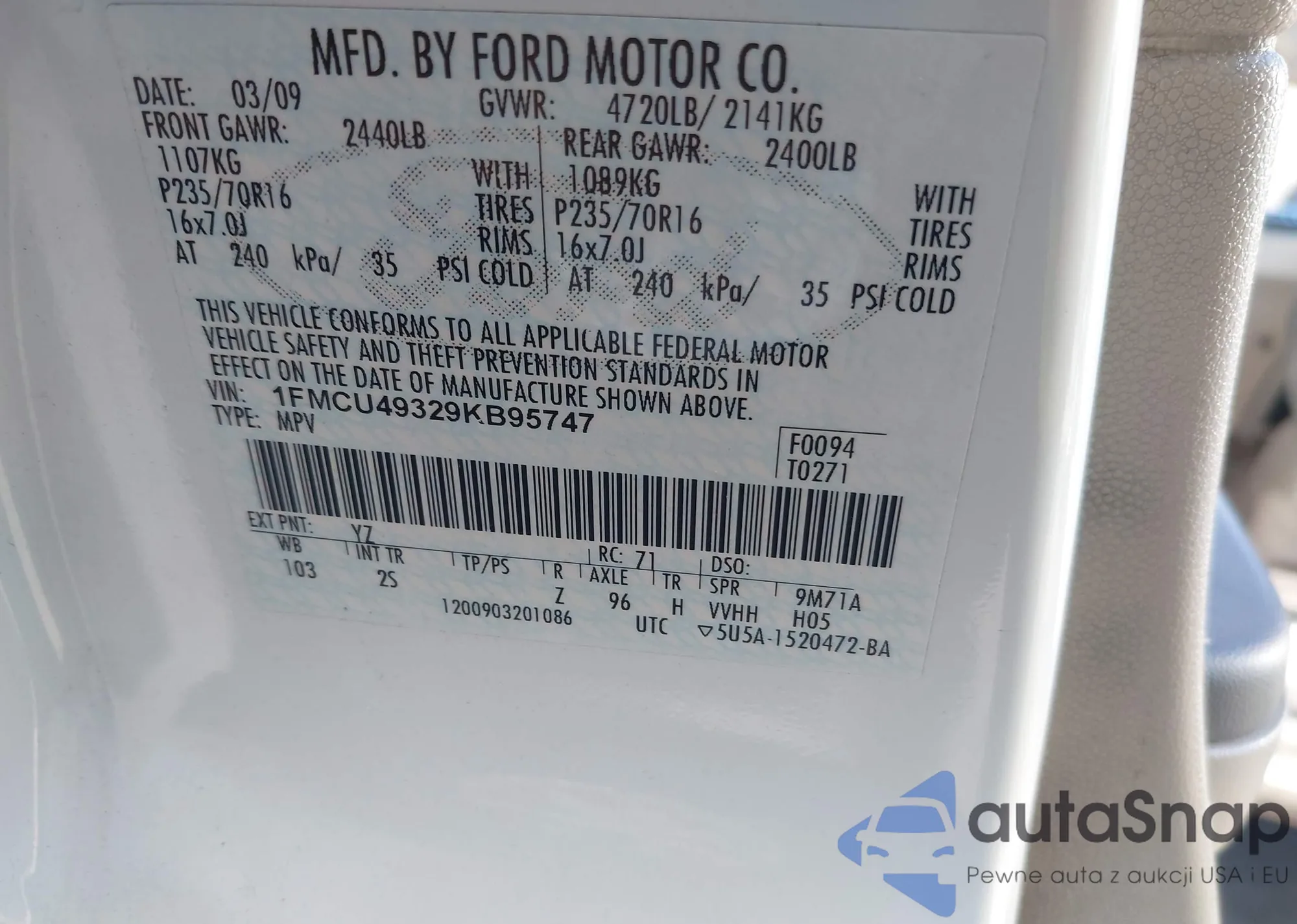 • VIN 1FMCU49329KB95747
