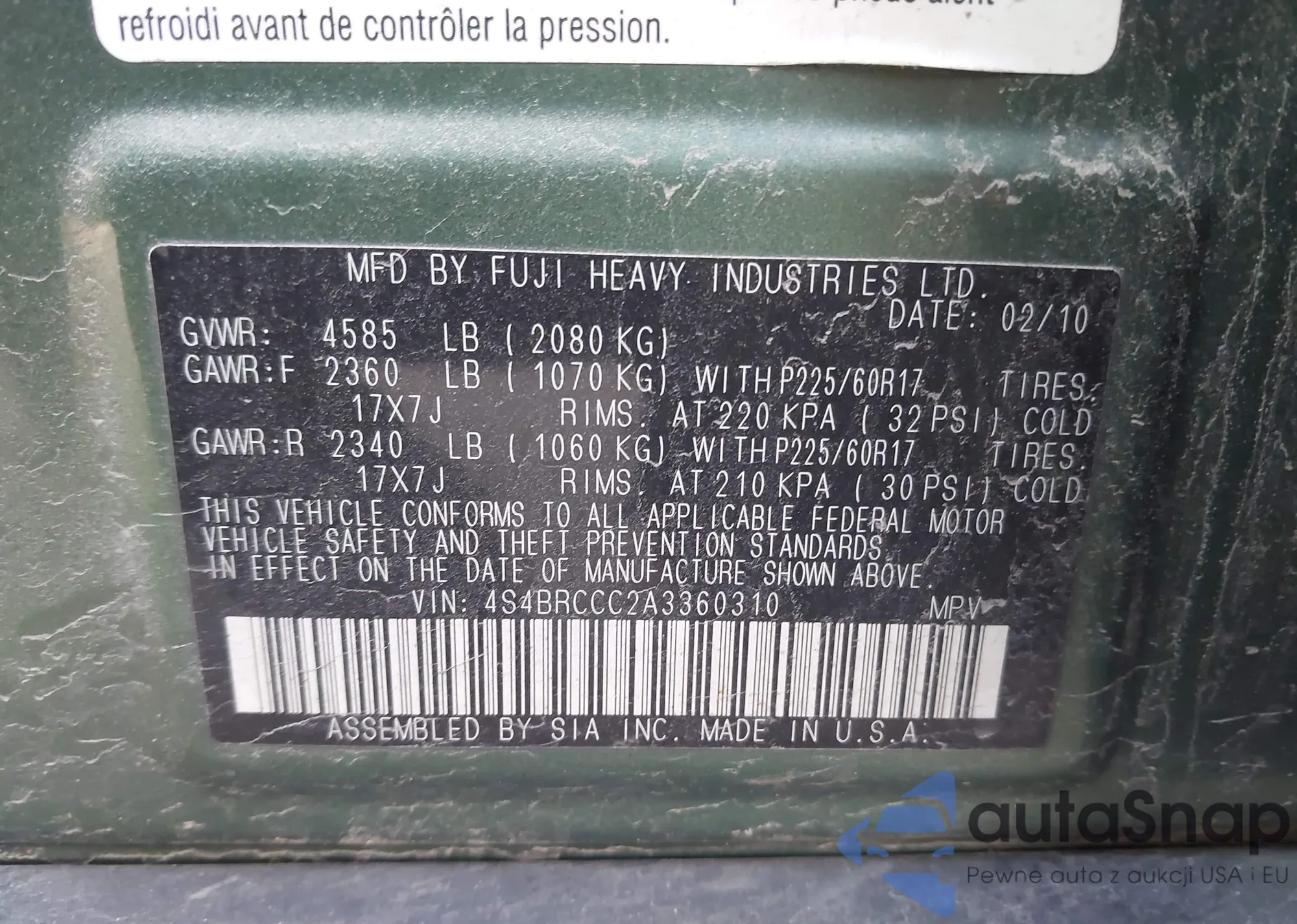 • VIN 1J4RS4GTXAC121248