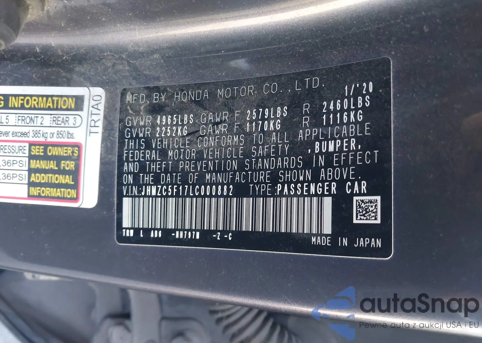 LOT: 43794211 VIN: JHMZC5F17LC000882