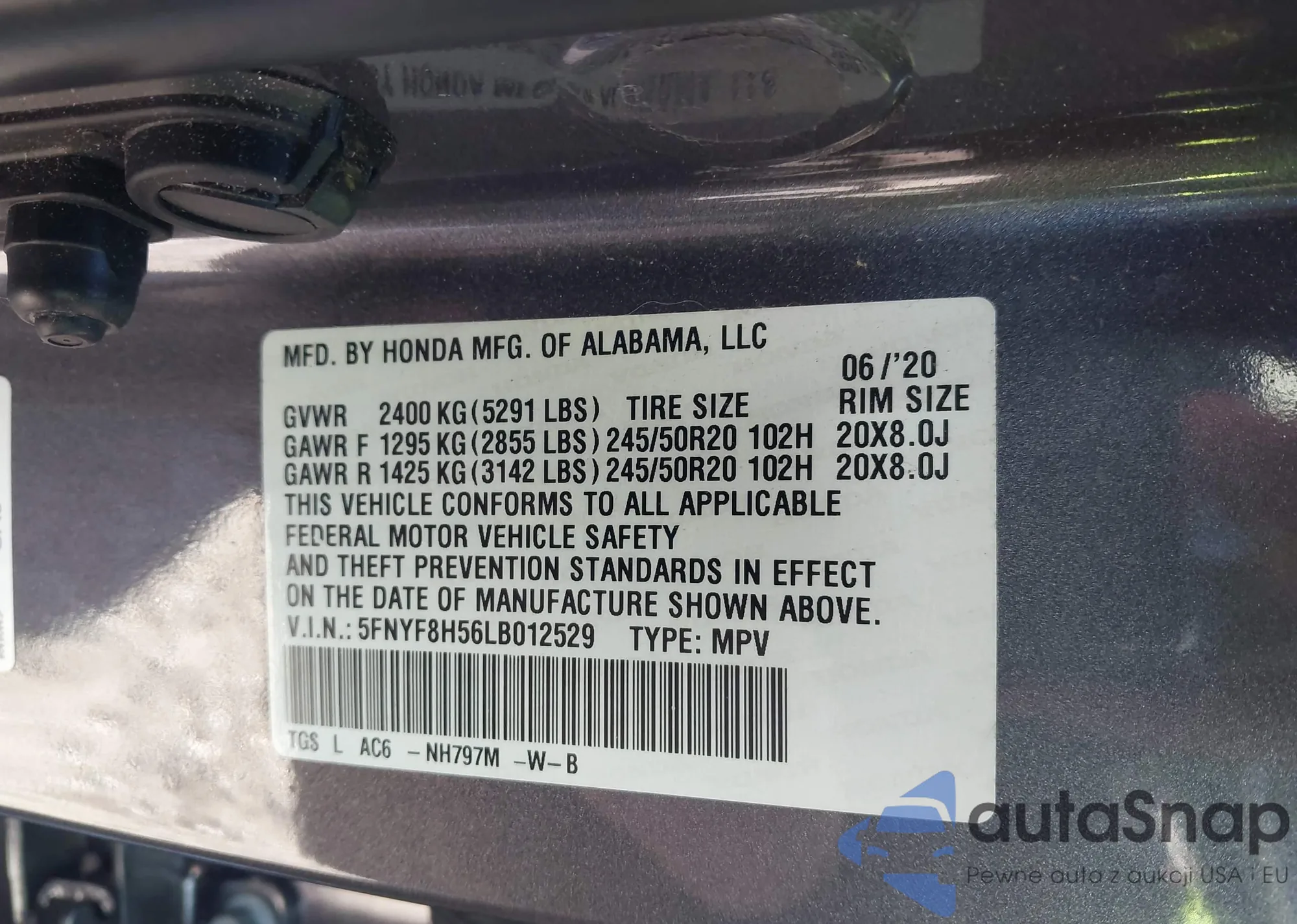 LOT: 43847553 VIN: 5FNYF8H56LB012529