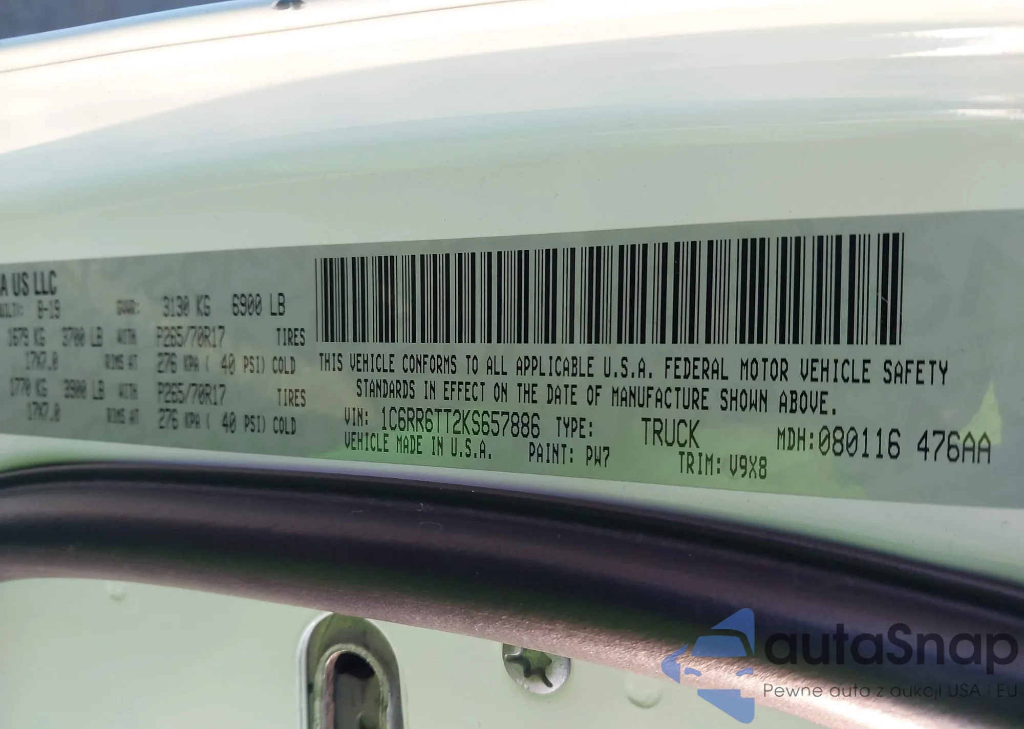 • VIN 1C6RR6TT2KS657886