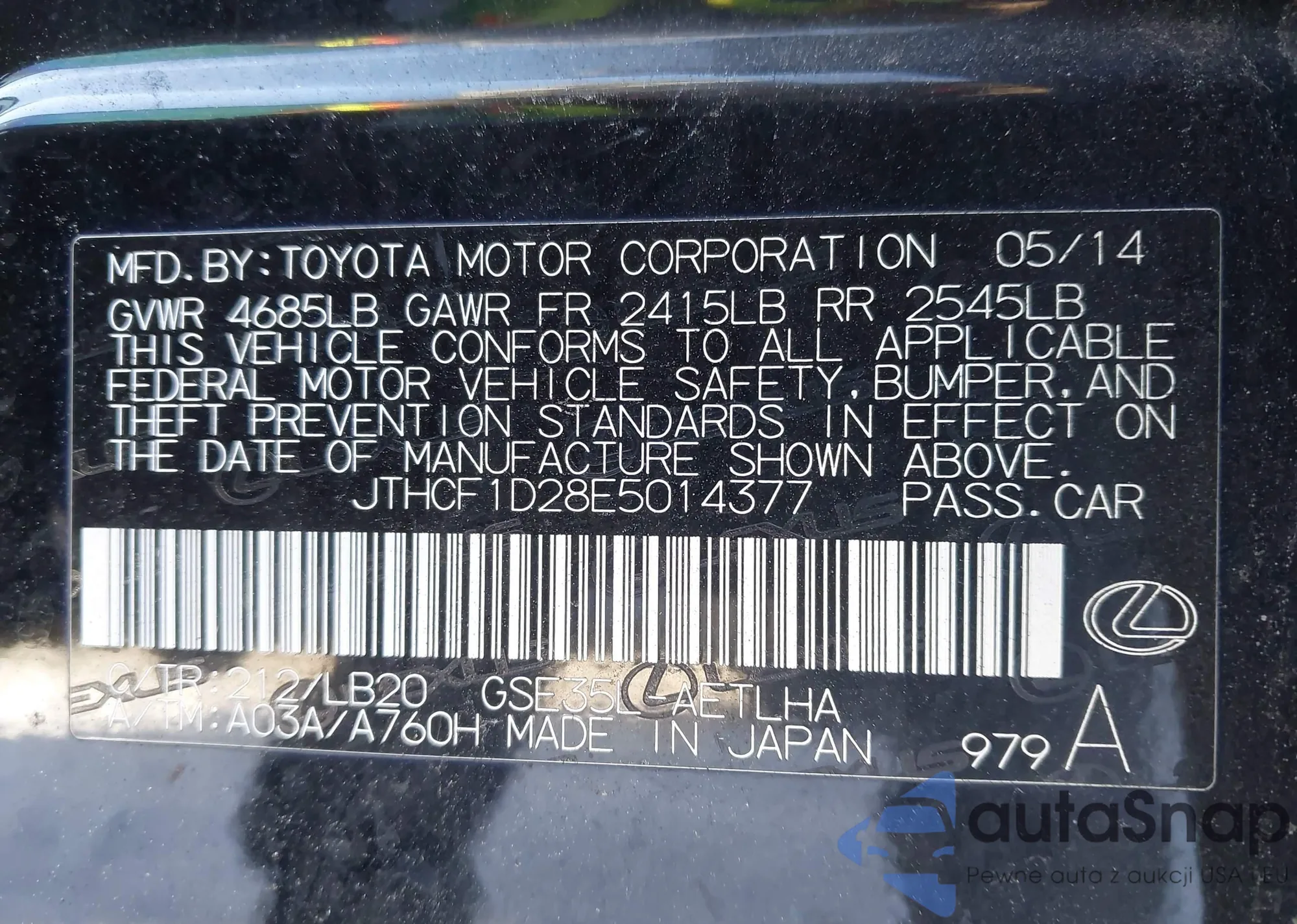 • VIN JTHCF1D28E5014377