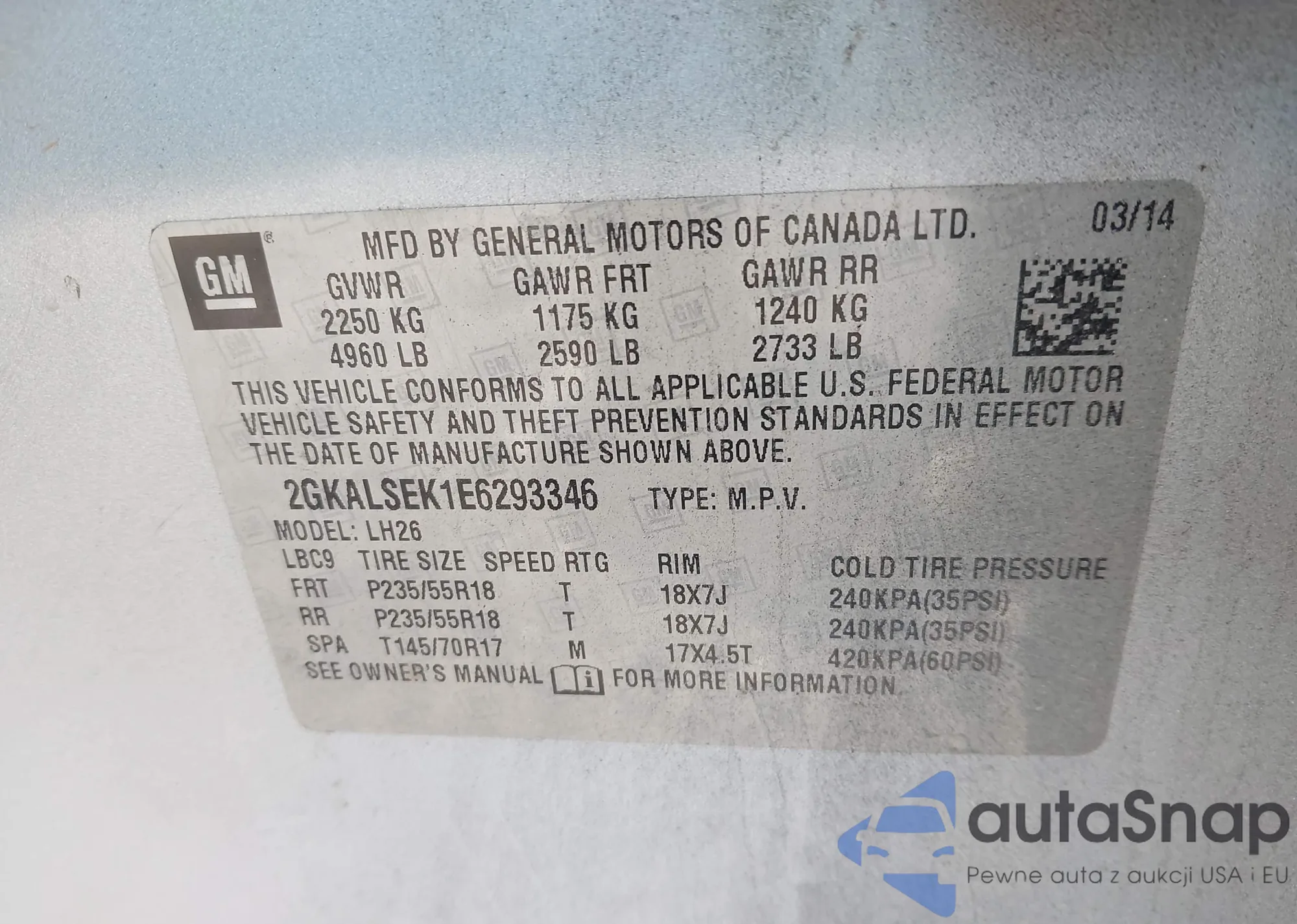 LOT: 43862049 VIN: 1G4PR5SK1H4105677