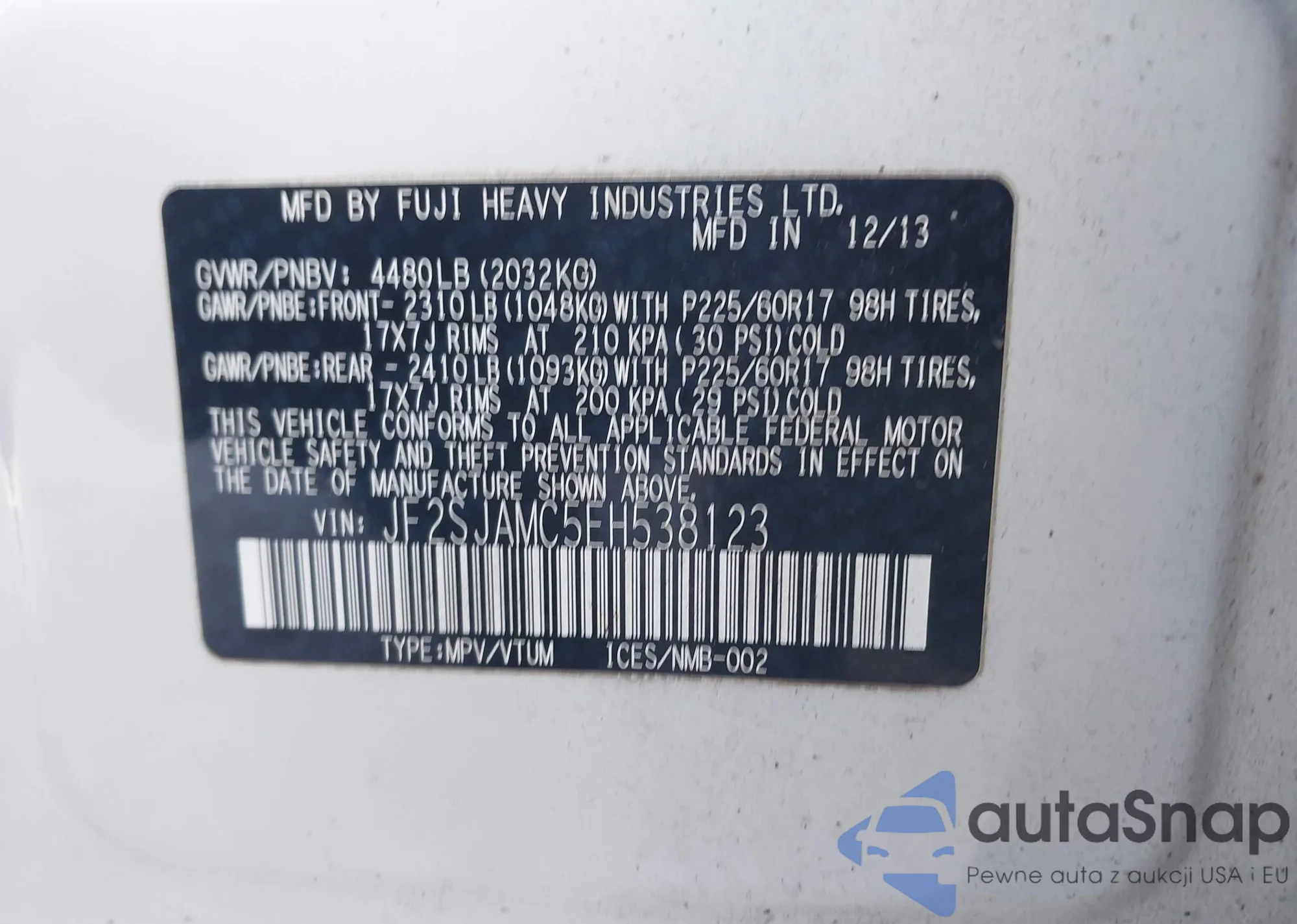LOT: 43575941 VIN: JF1SG636X5H745201