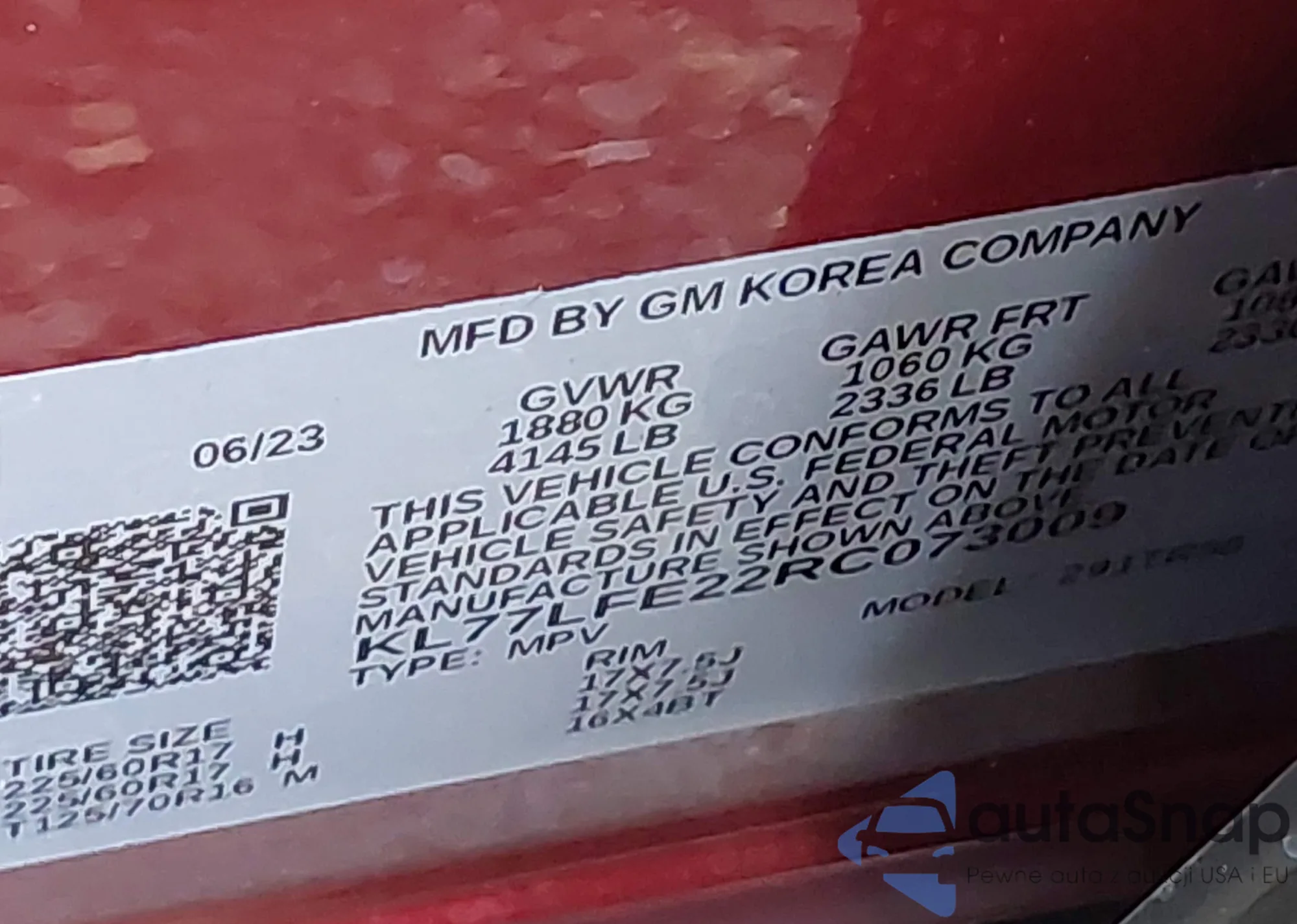 • VIN KL77LFE22RC073009