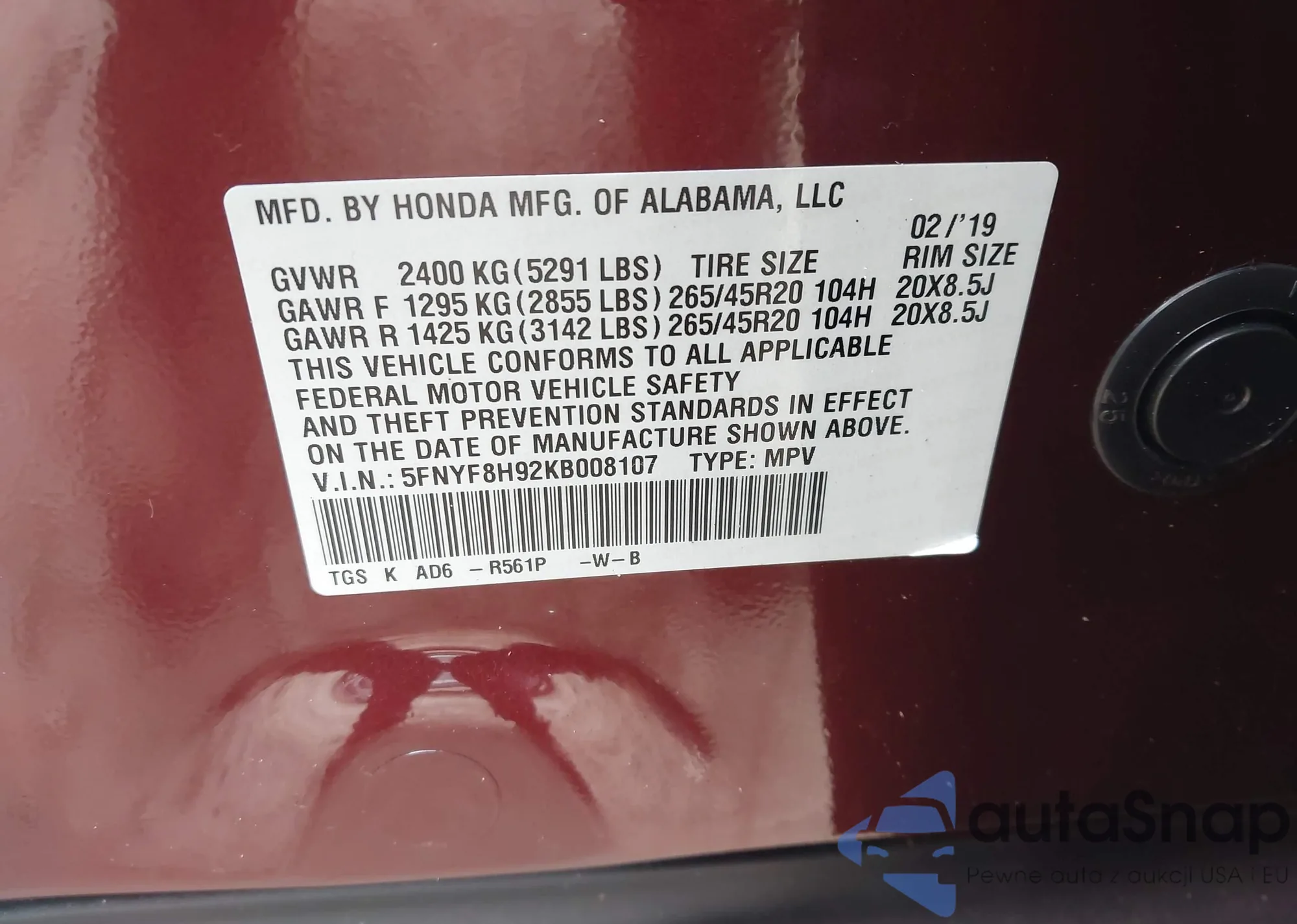 • VIN 1C4RJFBG9MC602904