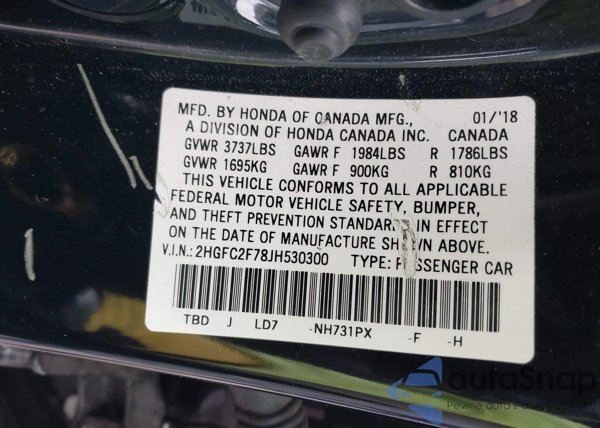 LOT: 43849160 VIN: 19XFB2F5XDE228233