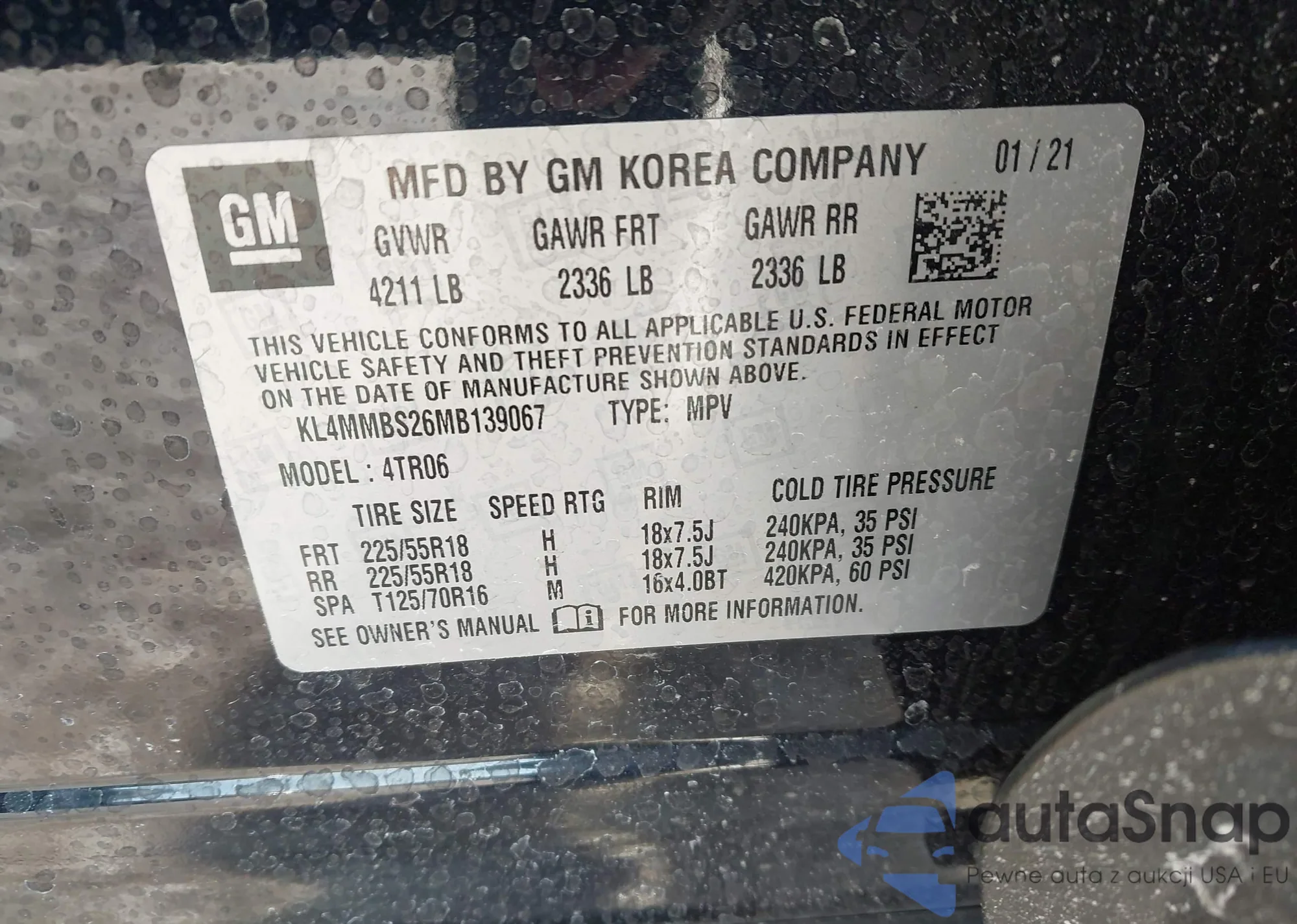 LOT: 43909185 VIN: KL4MMBS26MB139067