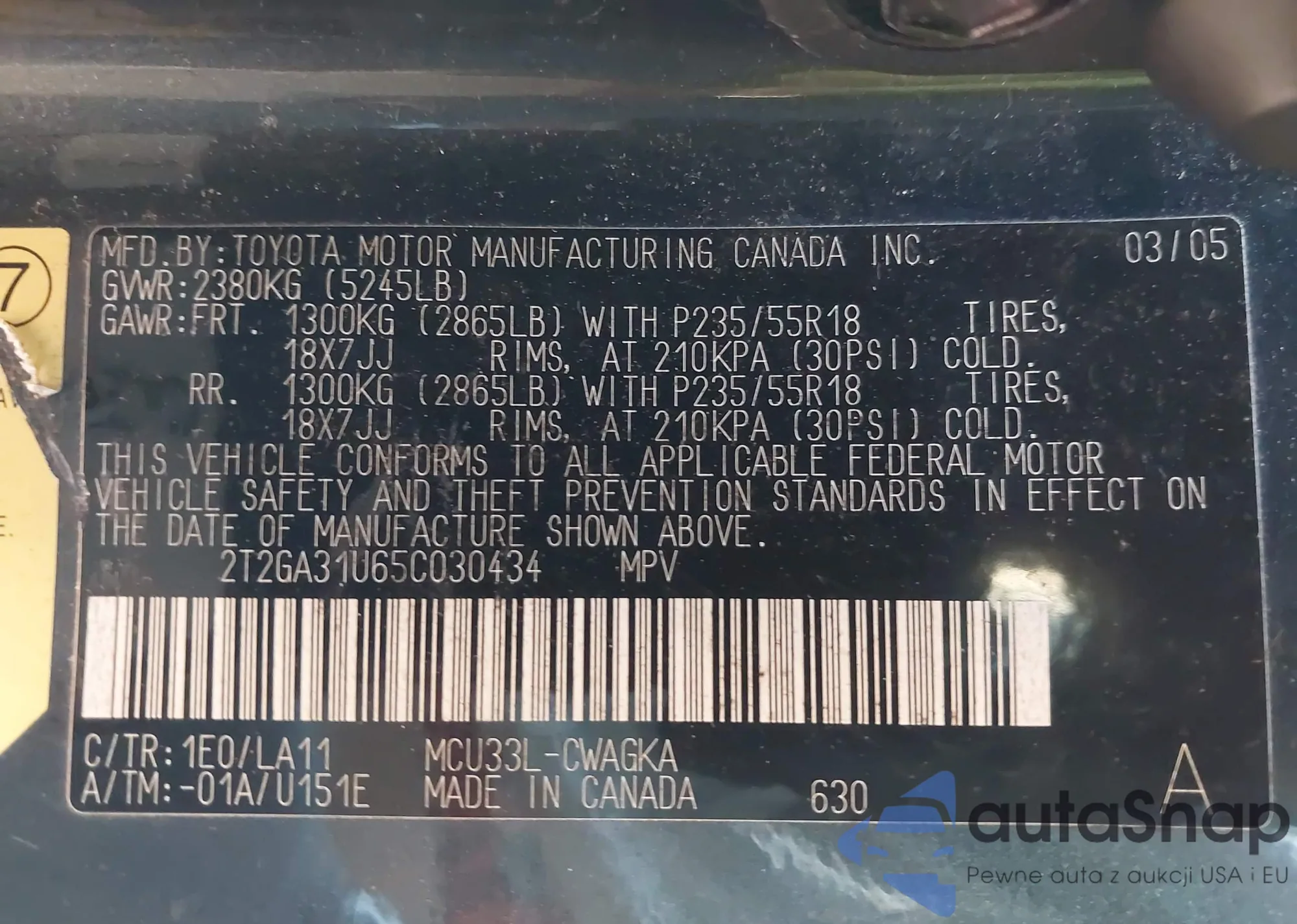 LOT: 43865884 VIN: 4T1BF3EK7BU163884