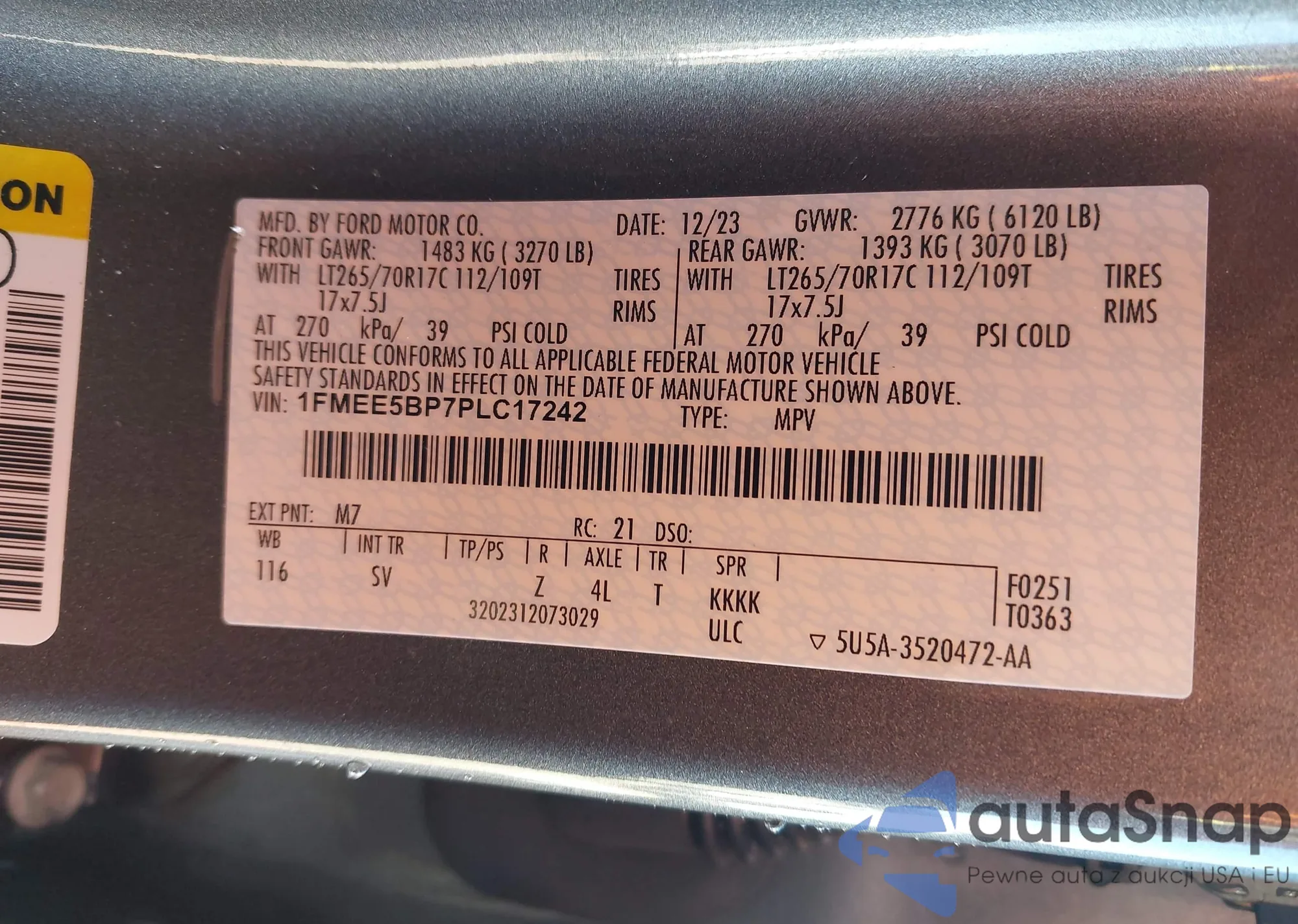 LOT: 44159645 VIN: 1FMEE5BP7PLC17242