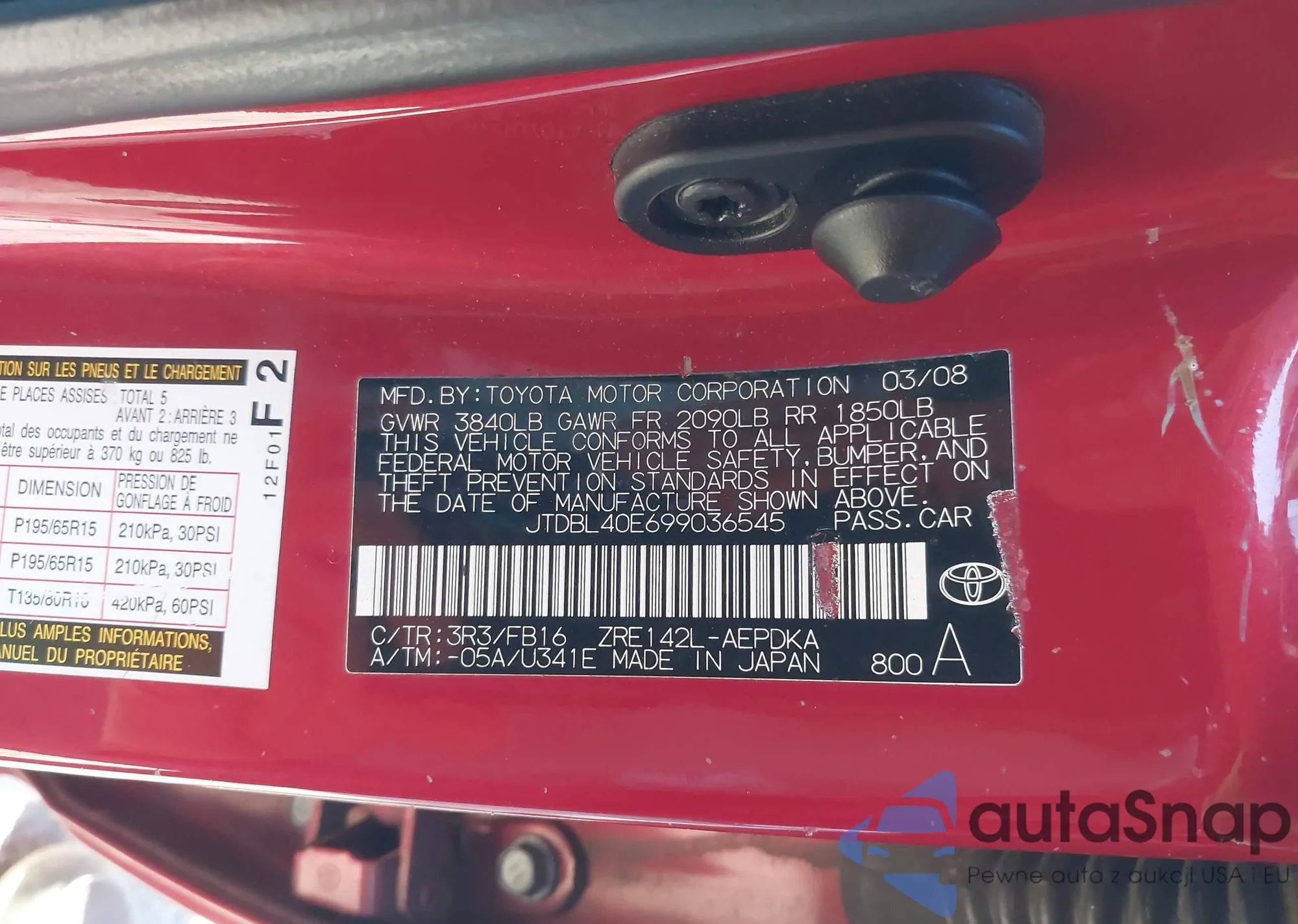 LOT: 43730631 VIN: JTDBL40E699036545