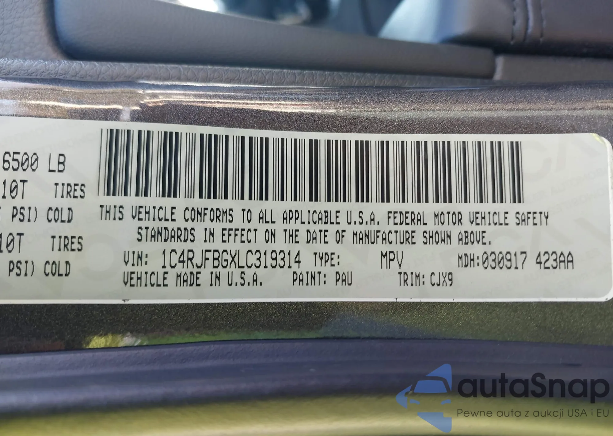 • VIN 1C4RJFBGXLC319314