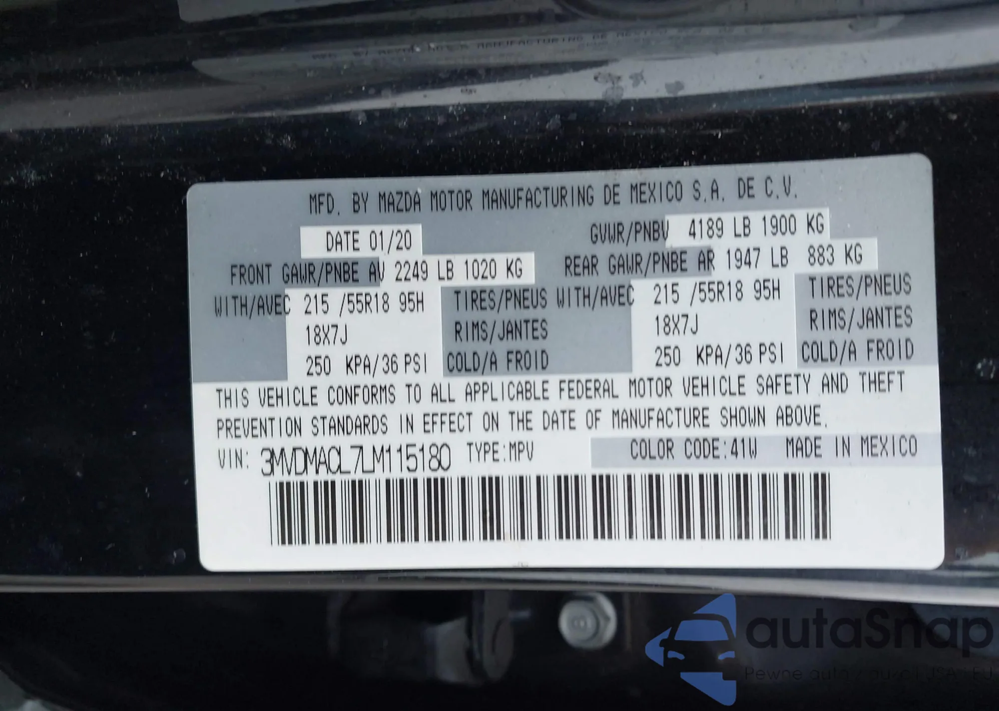 • VIN 3MVDMACL7LM115180