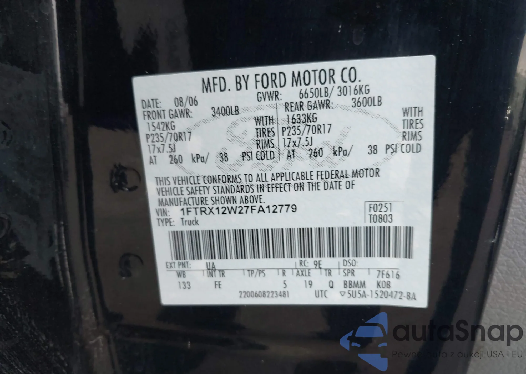 • VIN 1FTRX12W27FA12779