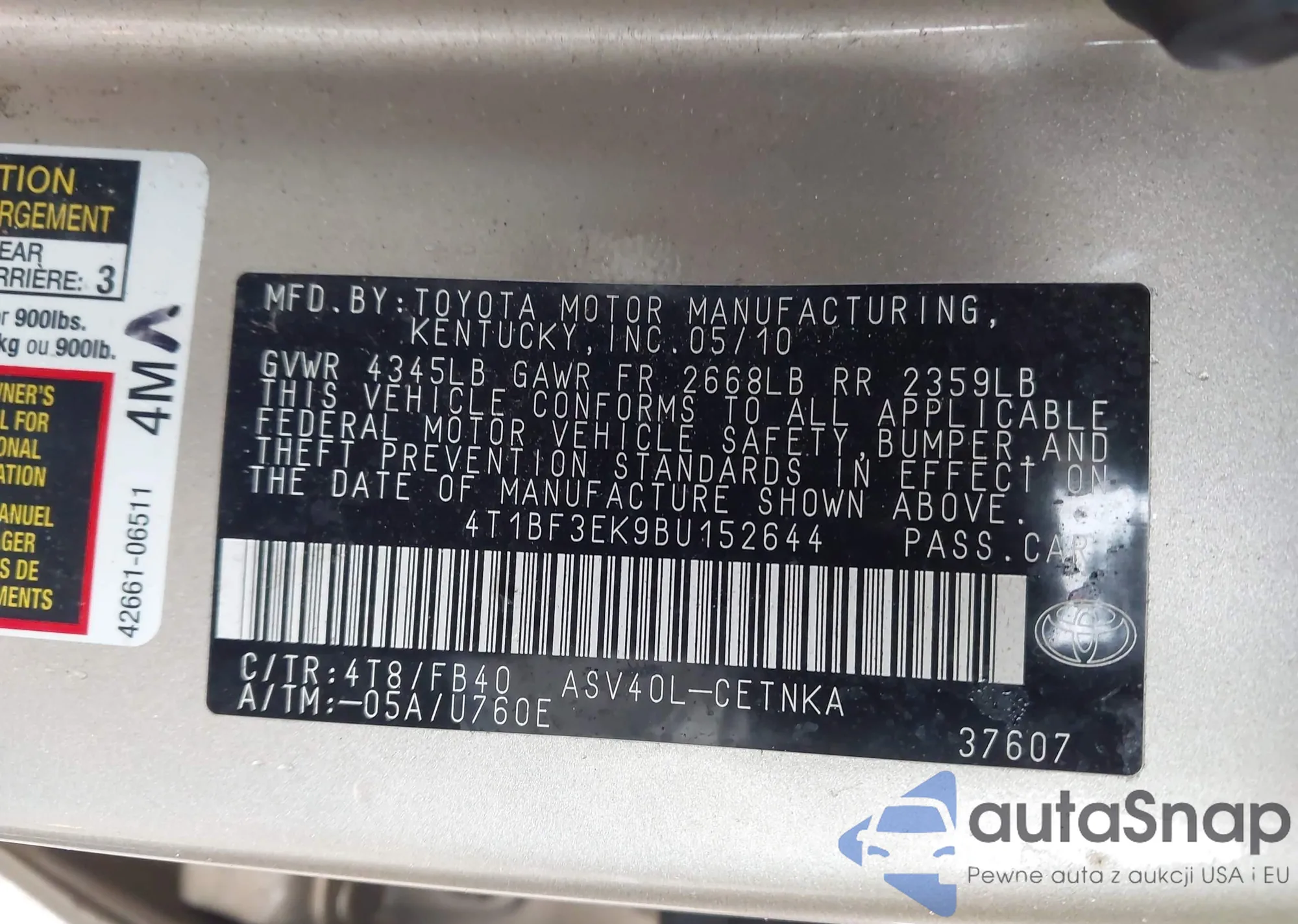 • VIN 4T1BF3EK9BU152644