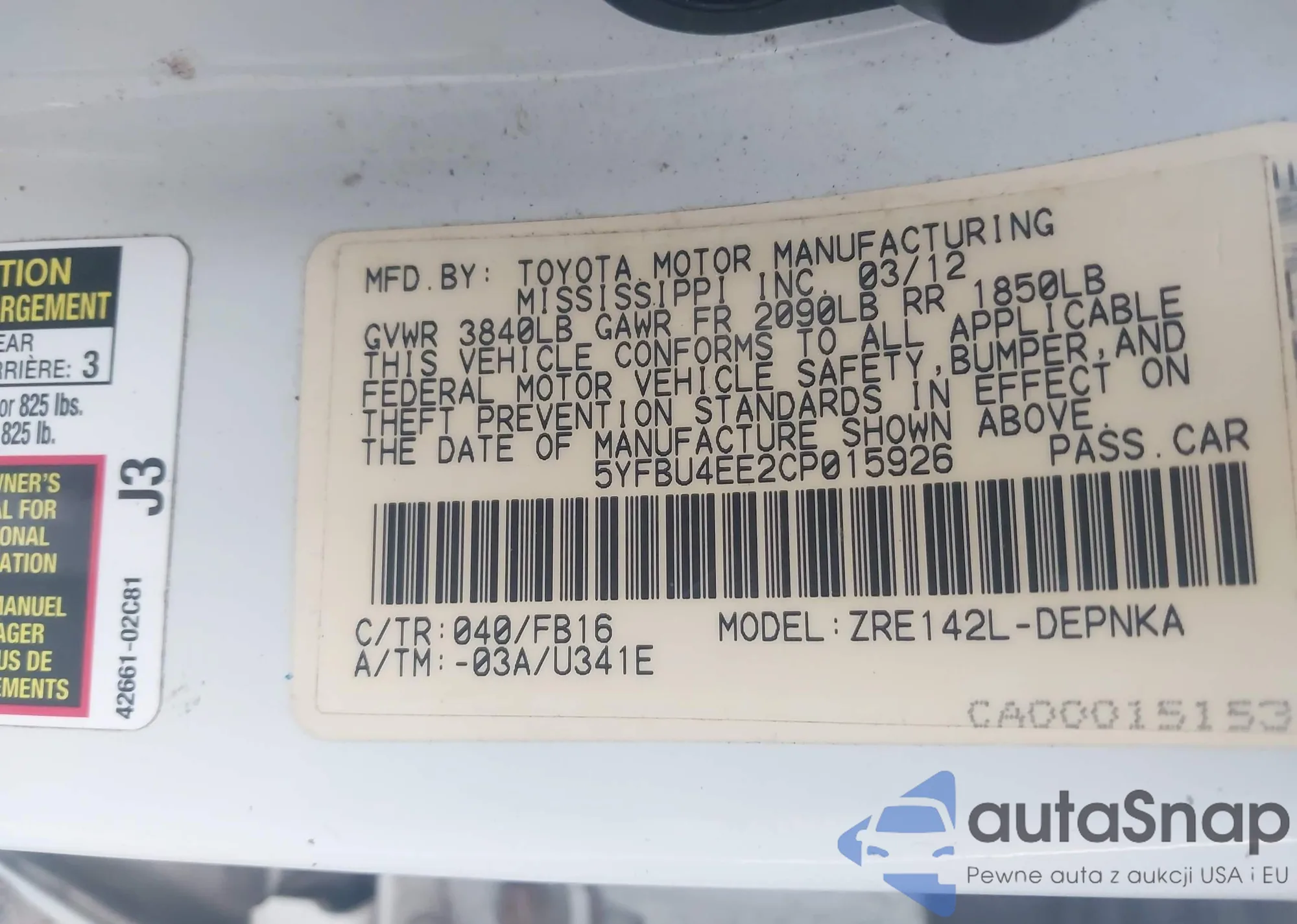 LOT: 44024892 VIN: 5YFBU4EE2CP015926