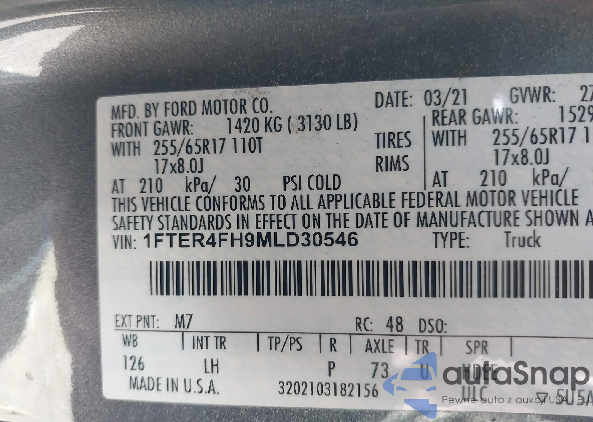 • VIN 1FTRX17LX3NA56429