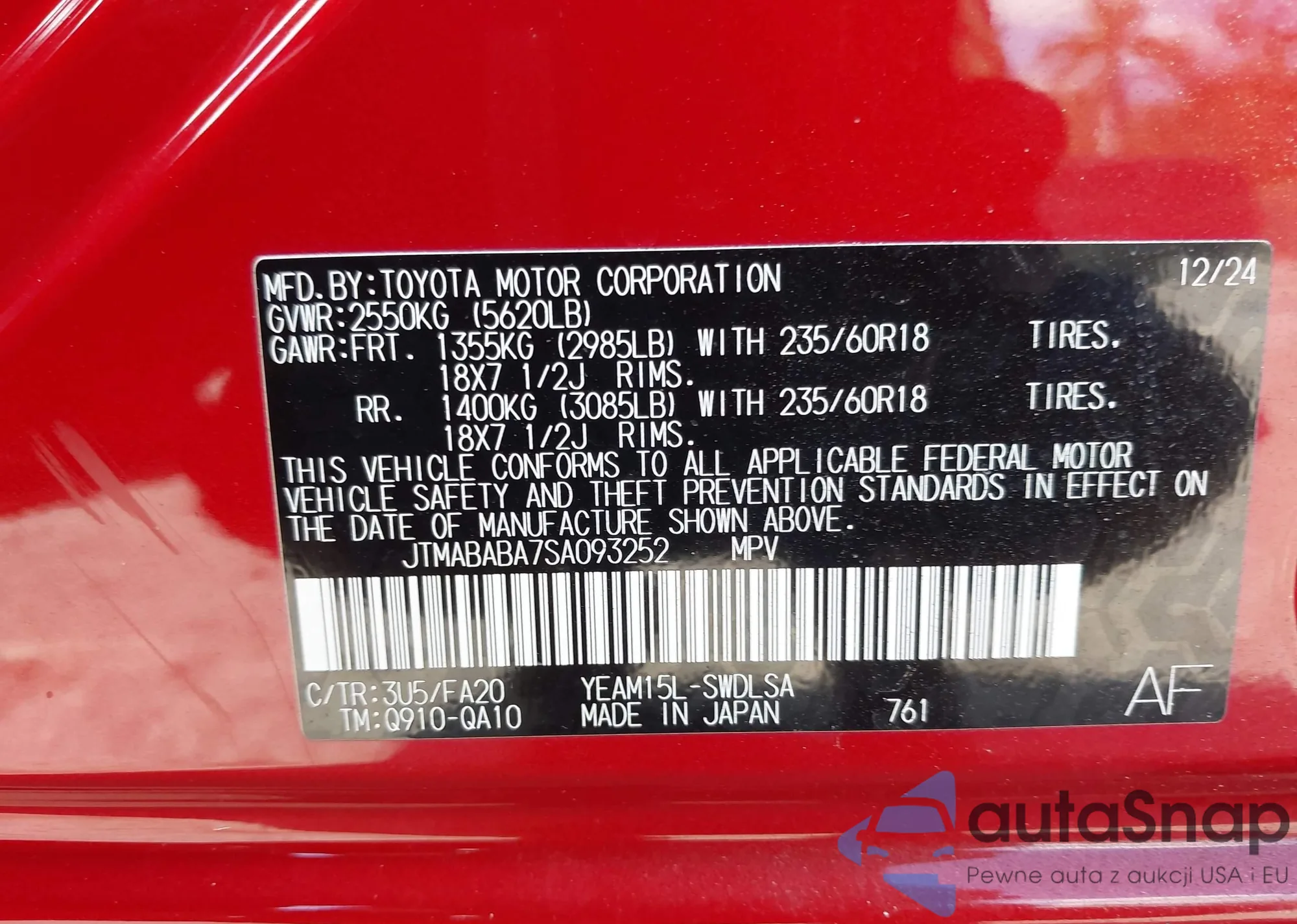 LOT: 43729111 VIN: JTMABABA7SA093252