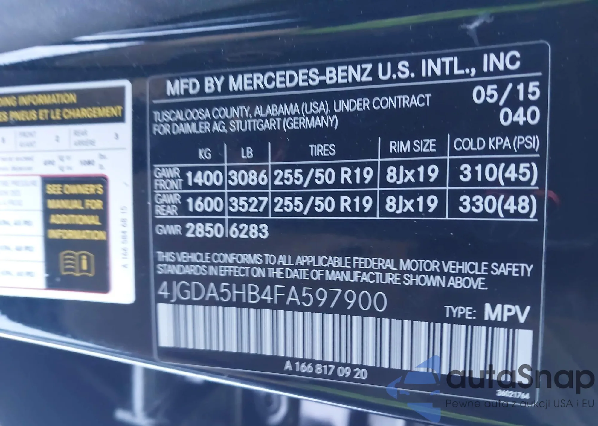 • VIN 4JGDA5HB4FA597900