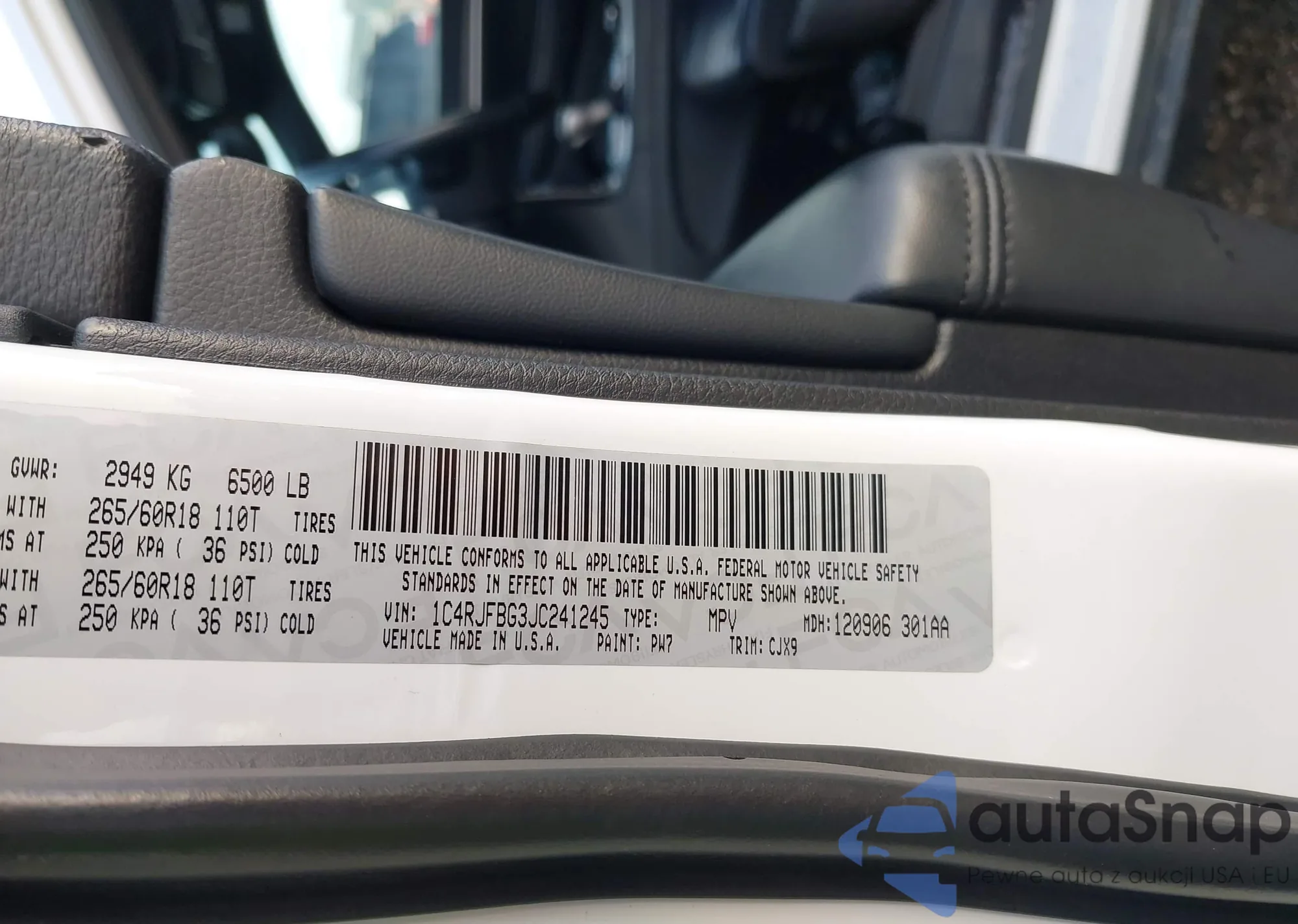 • VIN 1C4RJFBG3JC241245