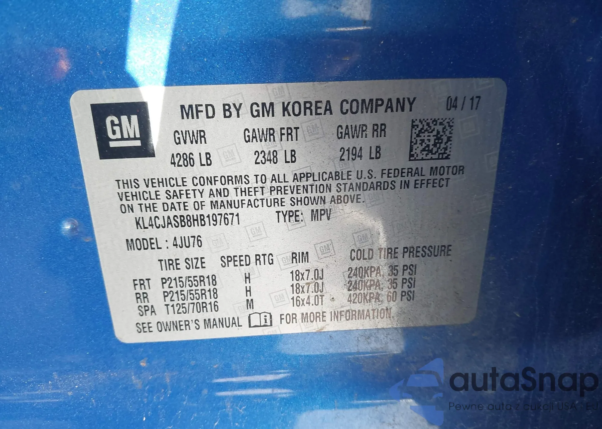 • VIN KL4CJASB8HB197671