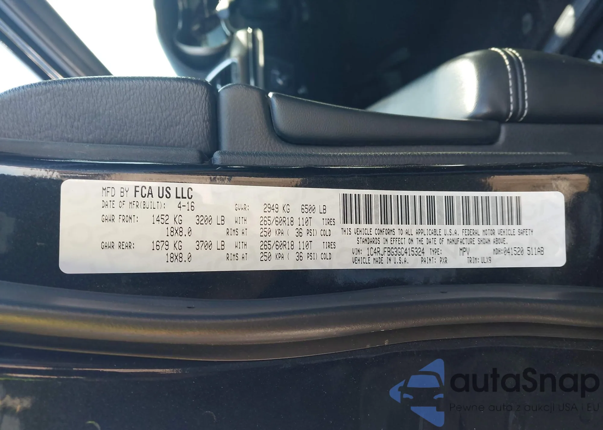 • VIN 1C4RJFBG3GC415324