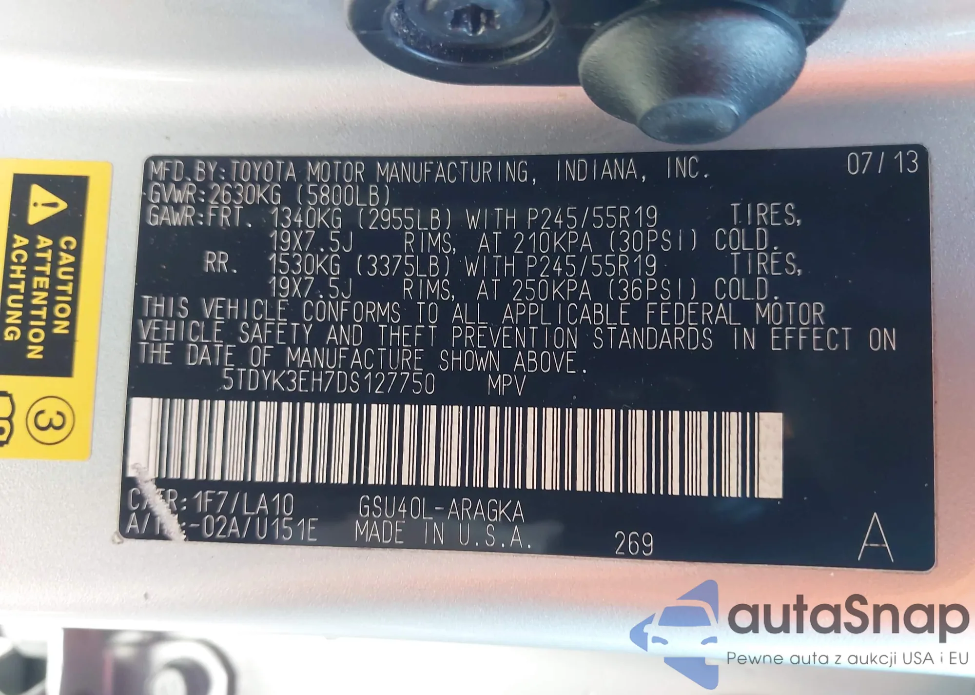 • VIN 5TDYK3EH7DS127750