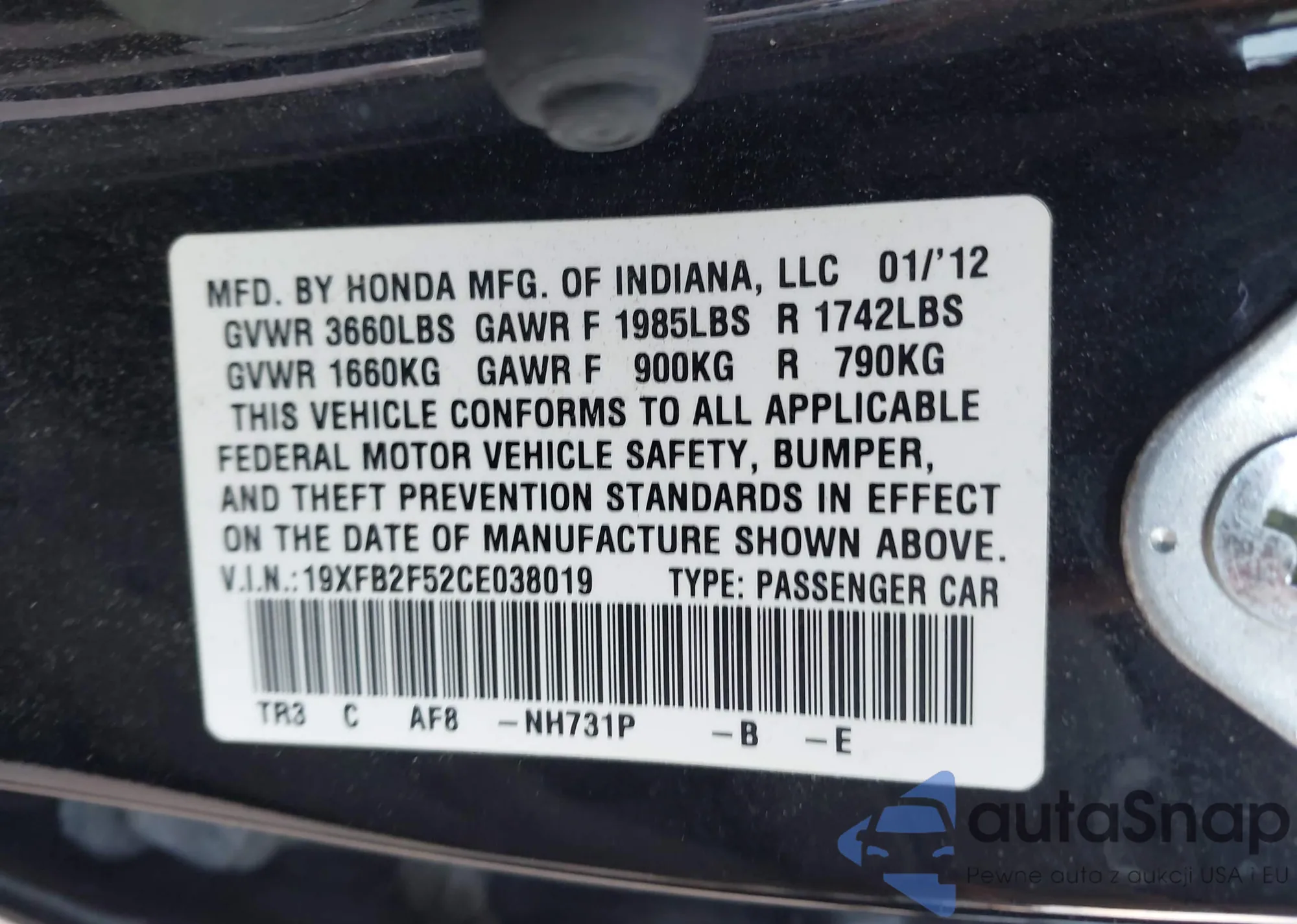 • VIN 19XFB2F52CE038019