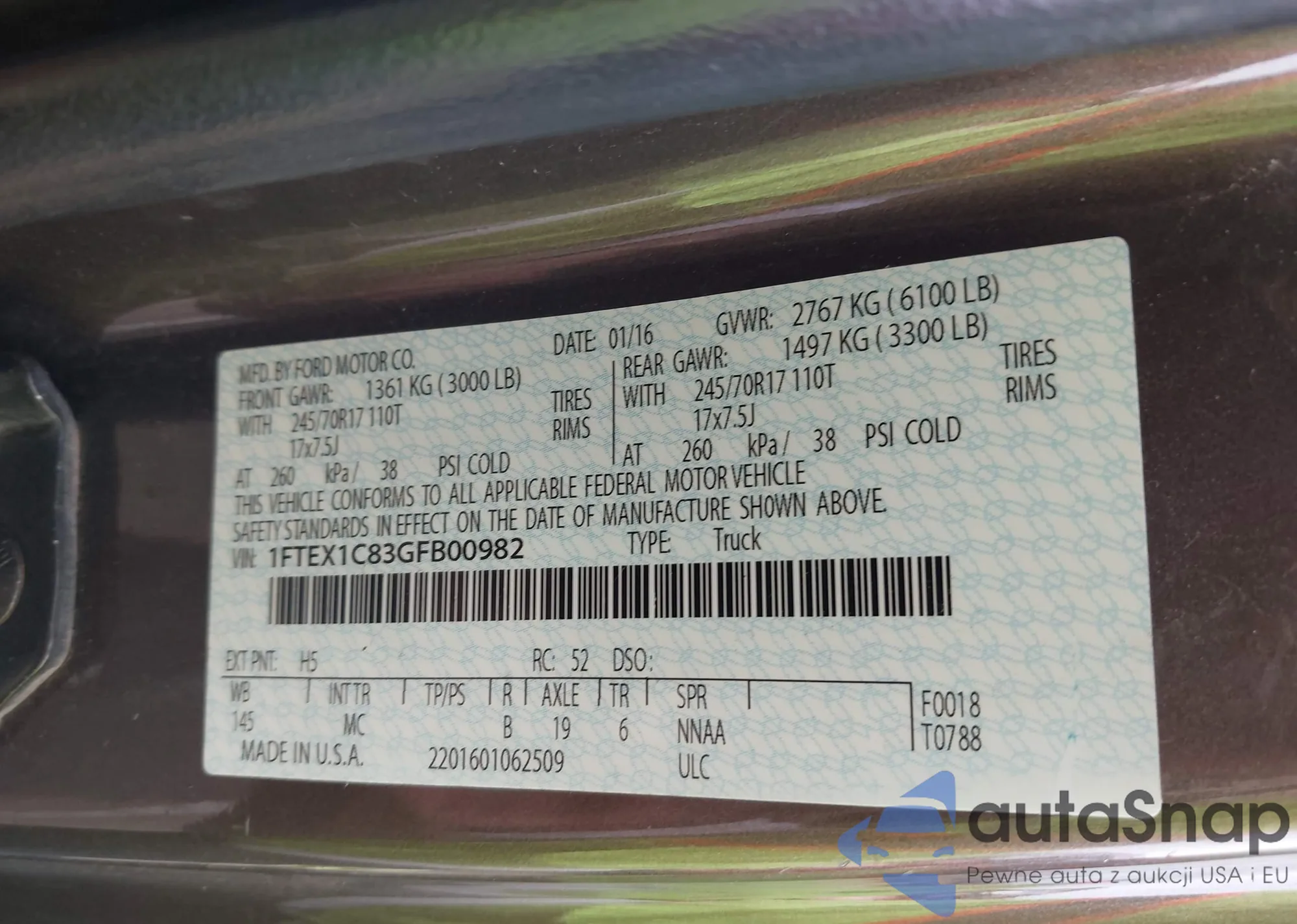 • VIN 1FTEX1C83GFB00982