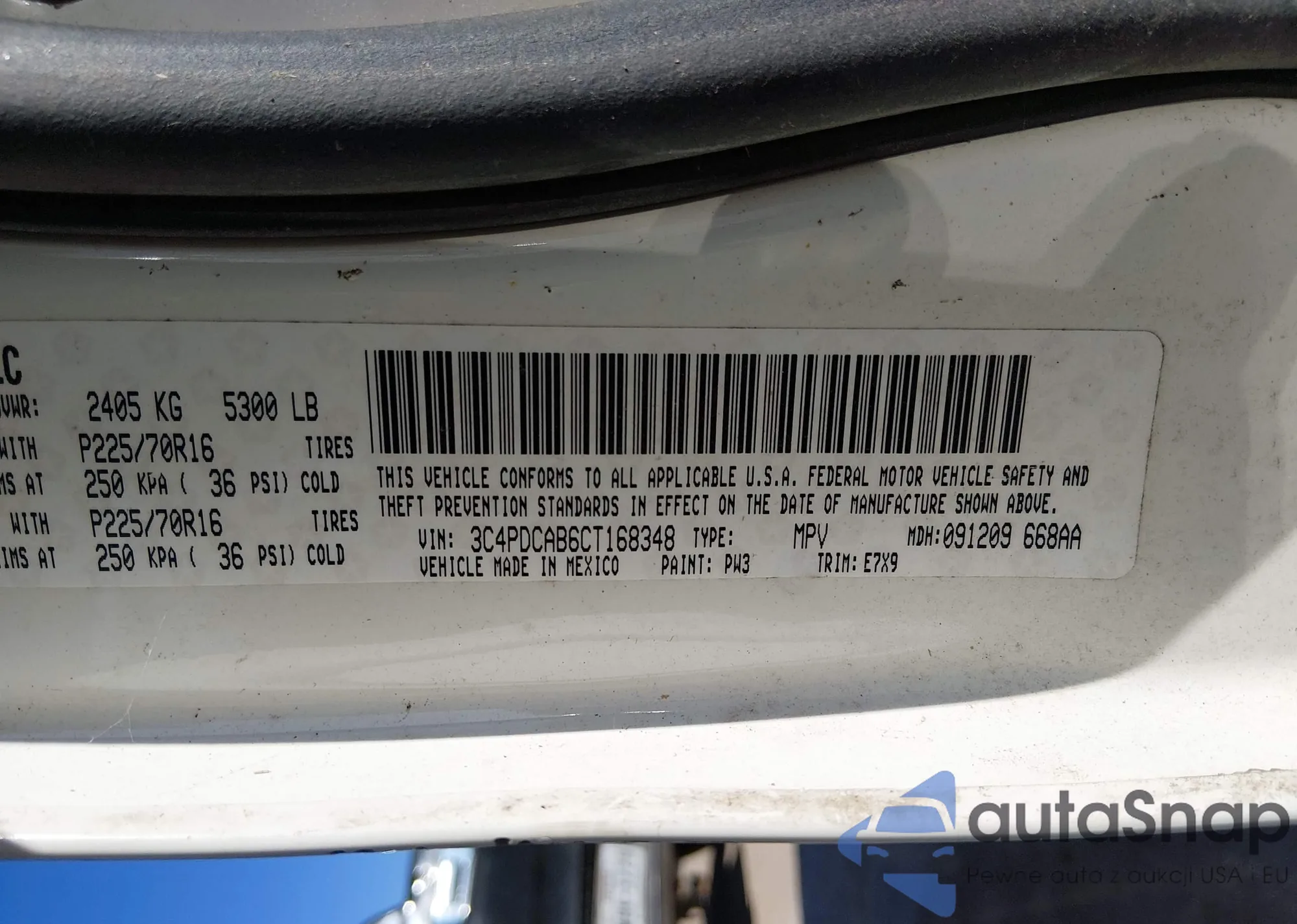 • VIN 3C4PDCAB6CT168348