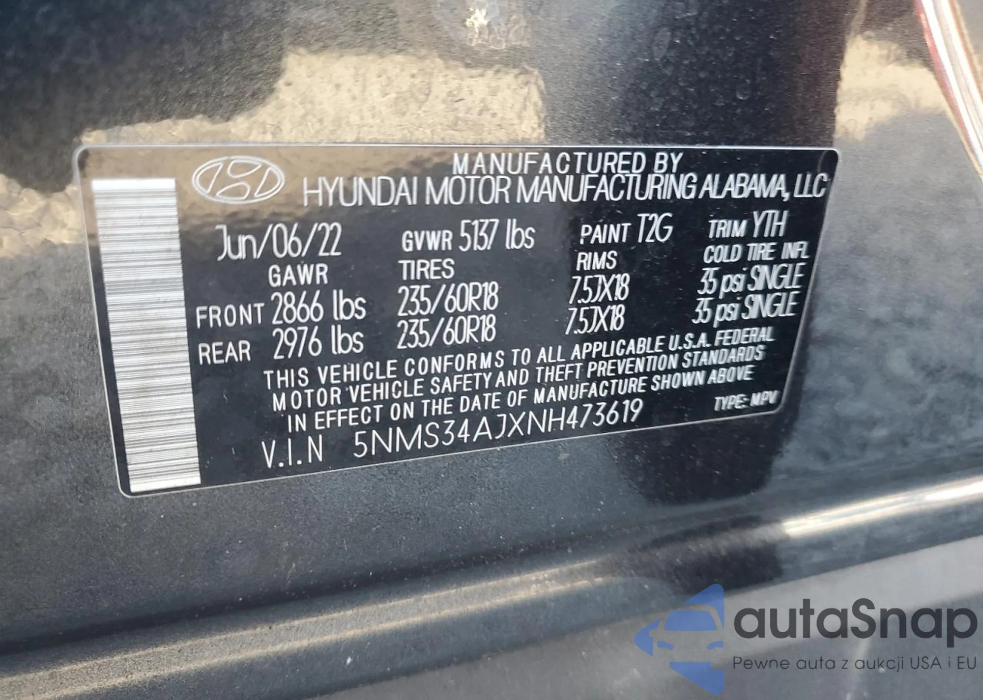 • VIN 5NMS34AJXNH473619