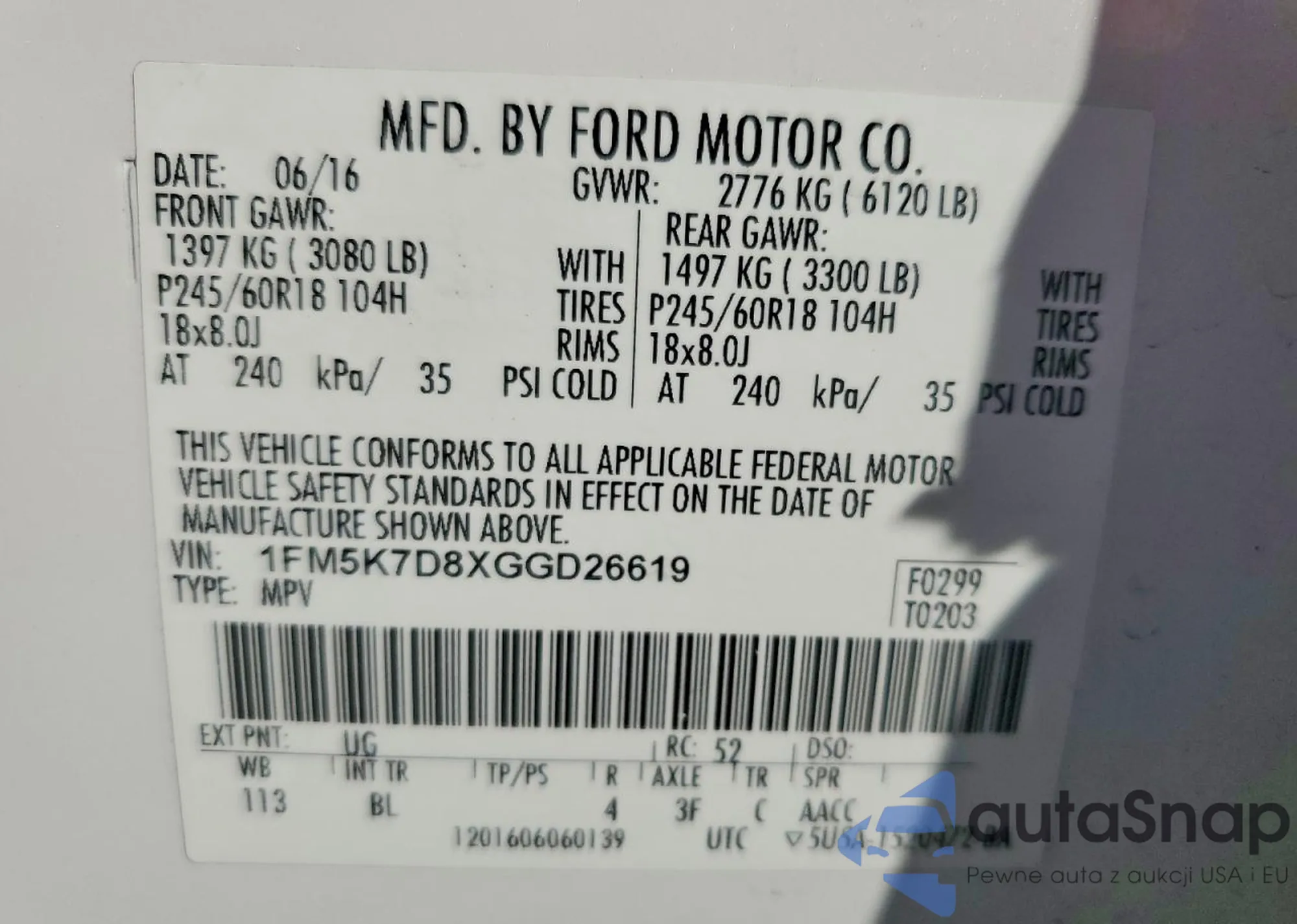 • VIN 1FM5K8DH1GGB57791