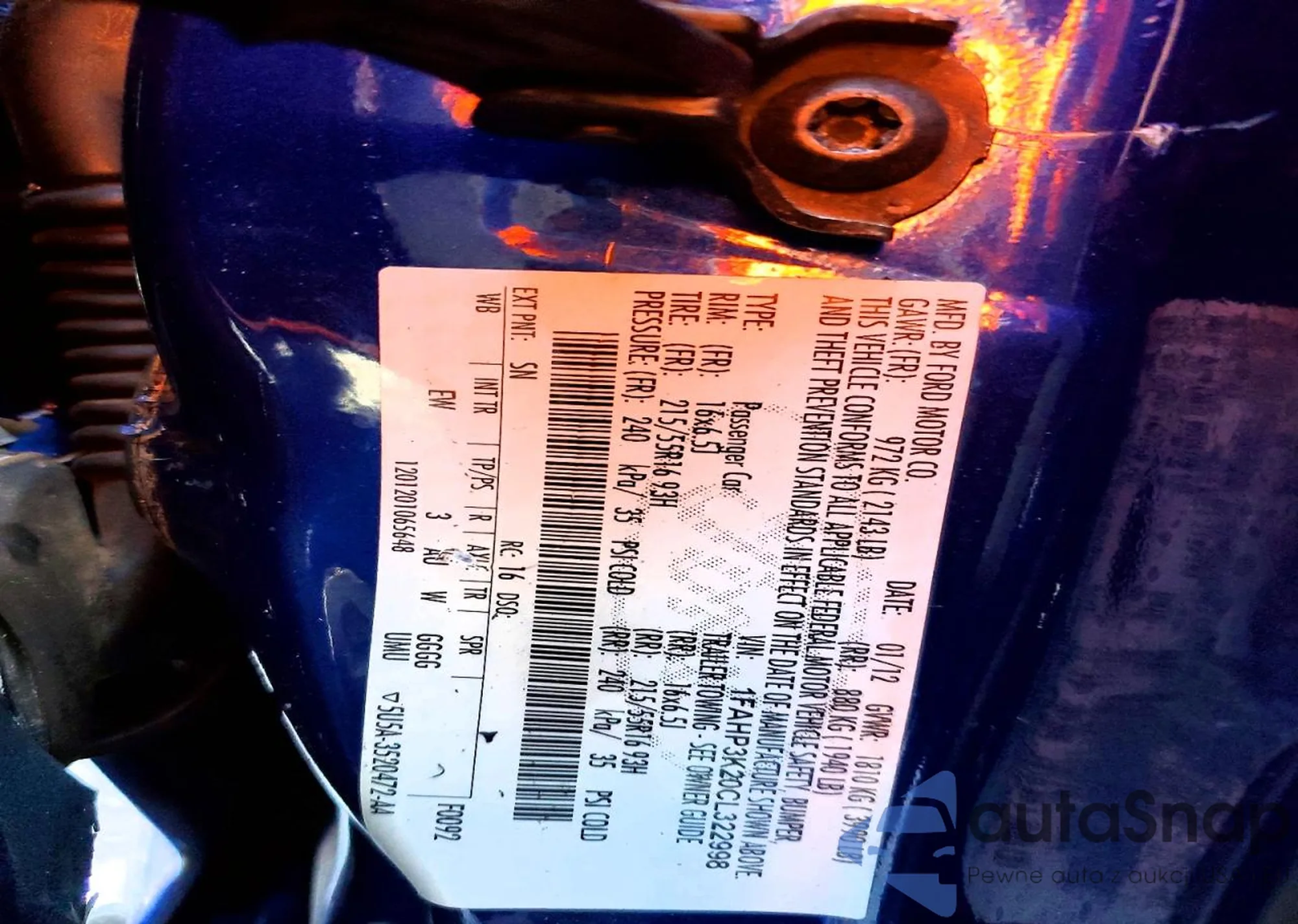 • VIN 1FAHP3K20CL322998