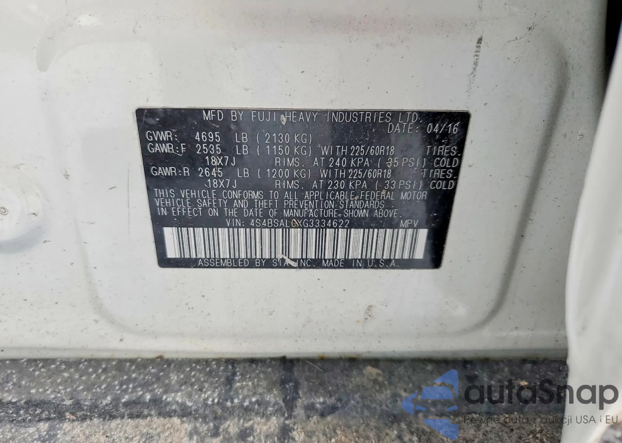 • VIN 4S3BNAN67F3040998