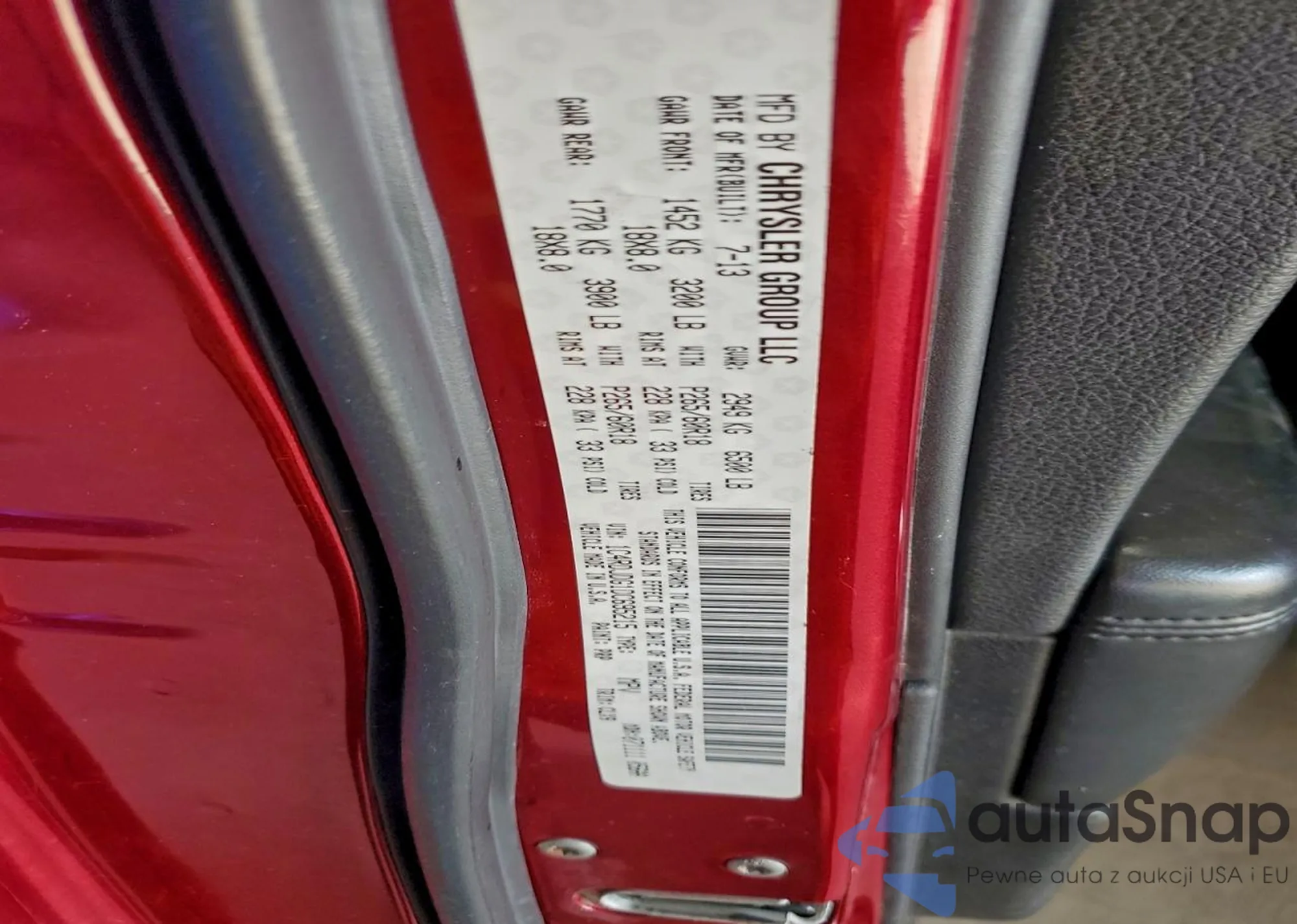• VIN 1C4RDJDG1DC695215