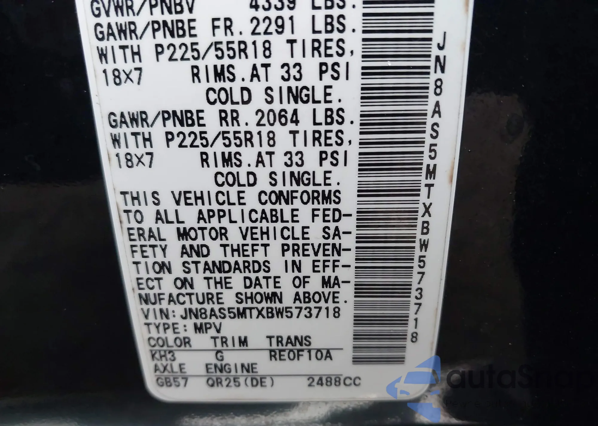 • VIN JN8AS5MTXBW573718