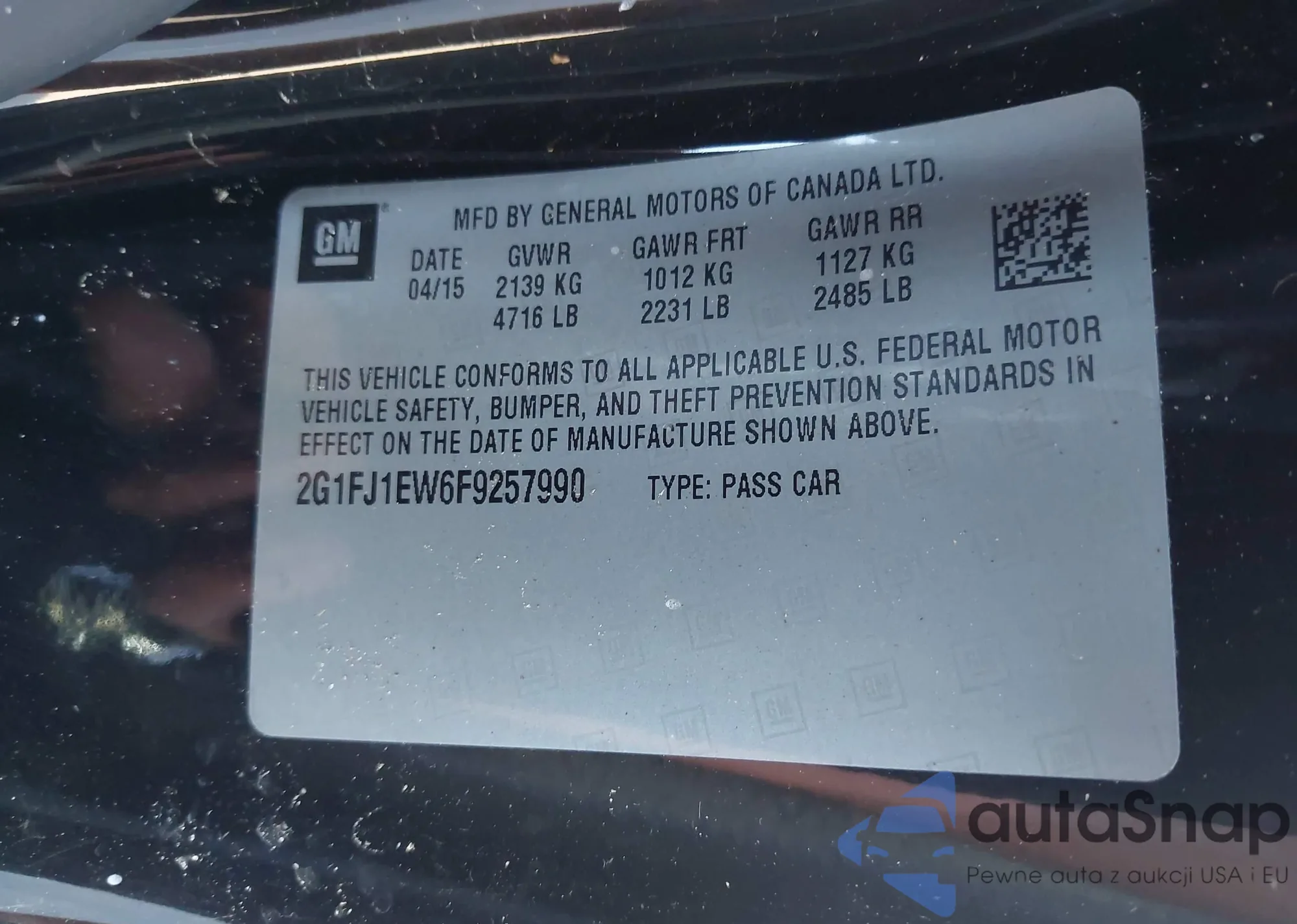 • VIN 2G1FJ1EW6F9257990